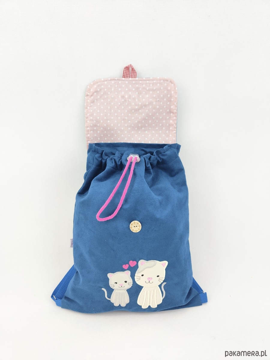 Plecak wykonany jest z alkantry - eko zamszu. To materiał bardzo trwały, odporny na wycieranie oraz wielokrotne pranie. Wewnątrz umieszczona jest bawełniana podszewka. Szelki są wygodne i łatwe w regulowaniu długości. Każda forma plecaka posiada uchwyt do zawieszenia.