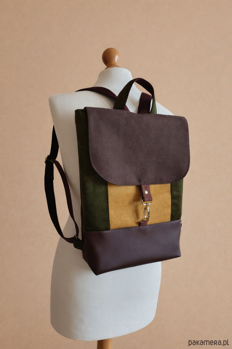 Plecak uszyty z mocnych materiałów dobranych kolorystycznie. Akcesoria w kolorze srebra.