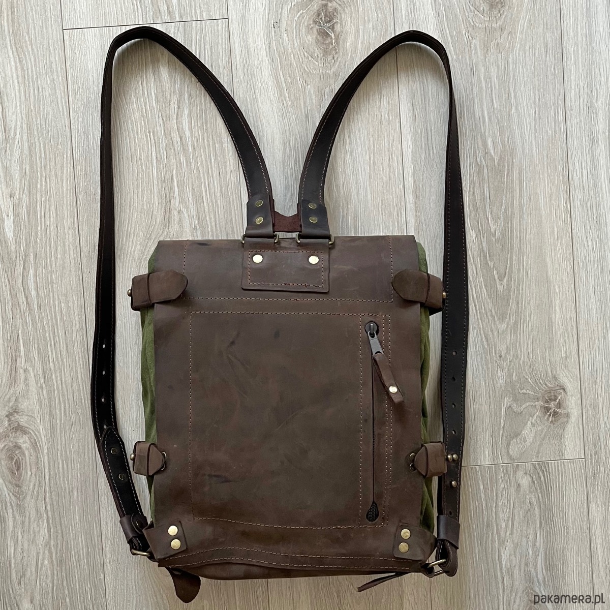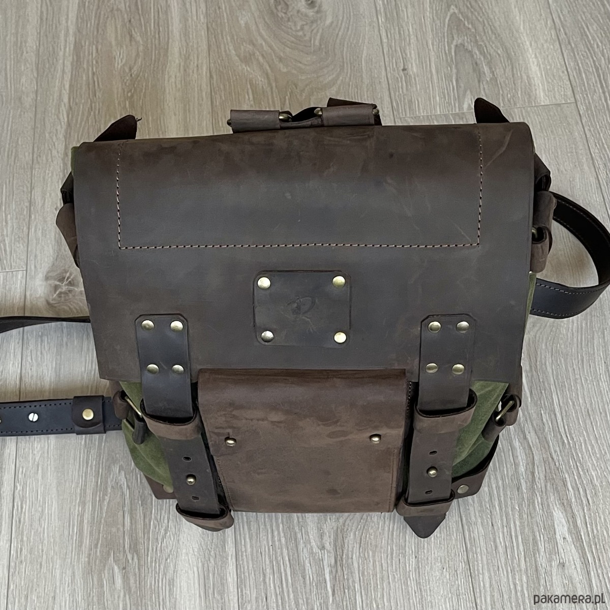 Ten wyjątkowy plecak w stylu vintage to połączenie solidnej skóry Crazy Horse i bawełny woskowanej (Wax Cotton) - materiałów, które z biegiem czasu zyskują tylko więcej charakteru. Każdy egzemplarz jest ręcznie wykonany w Polsce z dbałością o każdy detal, dzięki czemu staje się nie tylko praktycznym dodatkiem, ale i wyrazem indywidualnego stylu.