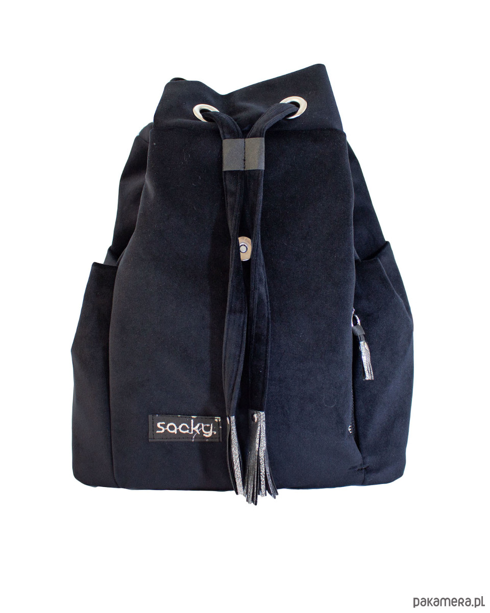 Welurowy plecak premium czarny to piękny, pojemny plecak ściągany na ozdobny sznurek. Plecak typu worek z regulacją ramiączek będzie dla Ciebie idealnym kompanem na co dzień. Welur użyty do uszycia plecaka to miękka, bardzo przyjemna w dotyku tkanina, ale jest również bardzo wytrzymałym materiałem, który łatwo utrzymać w czystości. Całość plecaka jest usztywniona, dlatego plecak nie będzie tracił kształtu i zawsze będzie się pięknie prezentował na twoich plecach. Charakterystycznymi punktami w plecaku są dodatki w postaci chwostów wykonane z washable craft paper. Plecak mieści format A4, dlatego jest idealny do pracy, szkoły lub na wyczekiwany urlop. Klapka plecaka zapina się na zapięcie magnetyczne.