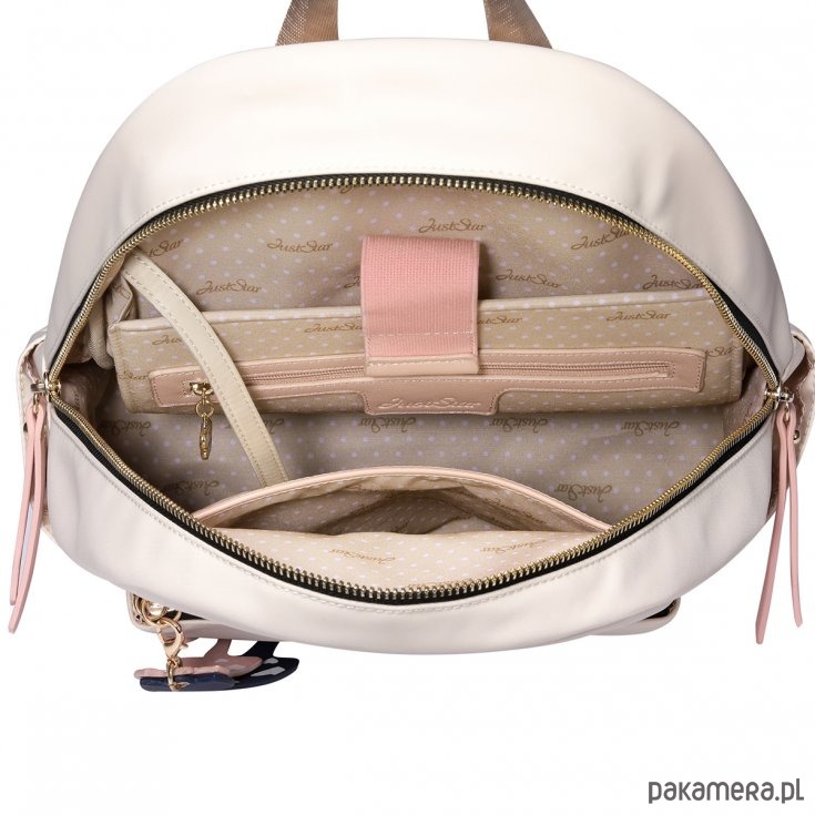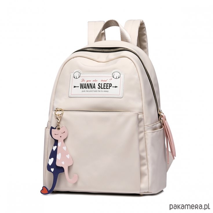 Nazwa: JUST STAR Modny plecak z kocimi zawieszkami Ecru