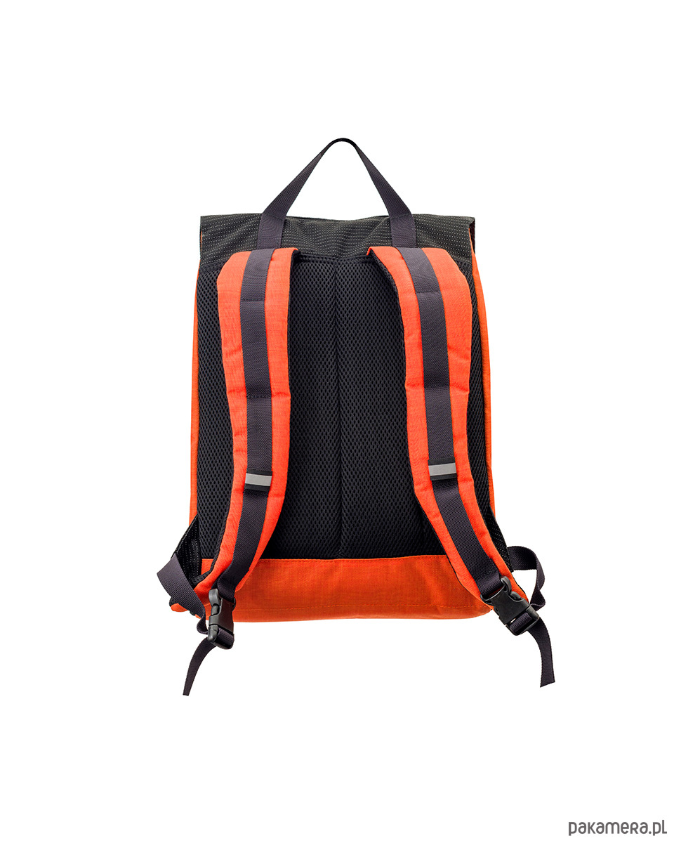 Plecak REFLECTIVE orange MEDIUM w sam raz na wyjście z laptopem i kilkoma rzeczami do pracy. Wieczorem z biurowego zamień go w sportowy - zmieścisz ręcznik i klapki na basen albo rzeczy na siłownię. Dla tych, którzy chcą mieć wolne ręce w każdej sytuacji, na przykład na rowerze. Idealny w podróży jako bagaż podręczny do samolotu. Z wersją REFLECTIVE bezpiecznie przemieścisz się rowerem po zmroku, bo wszyta w materiał odblaskowa nitka sprawia, że oświetlony przez nadjeżdżający samochód plecak widoczny jest z odległości 150 m.