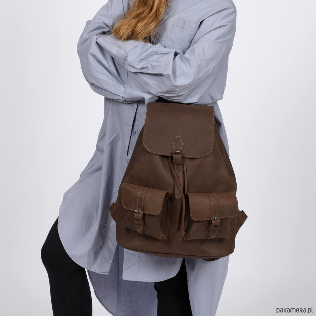 Skórzany Plecak Damski z Kieszeniami Belveder