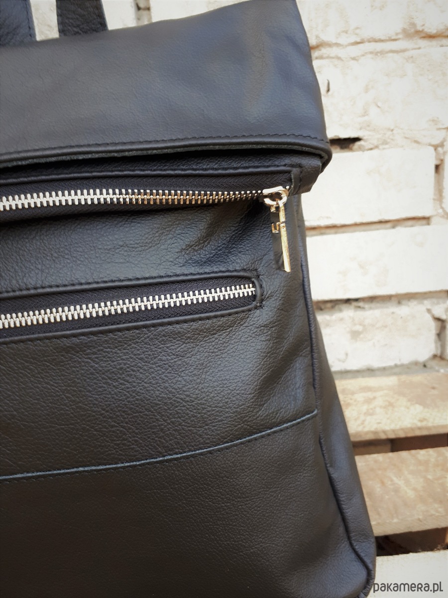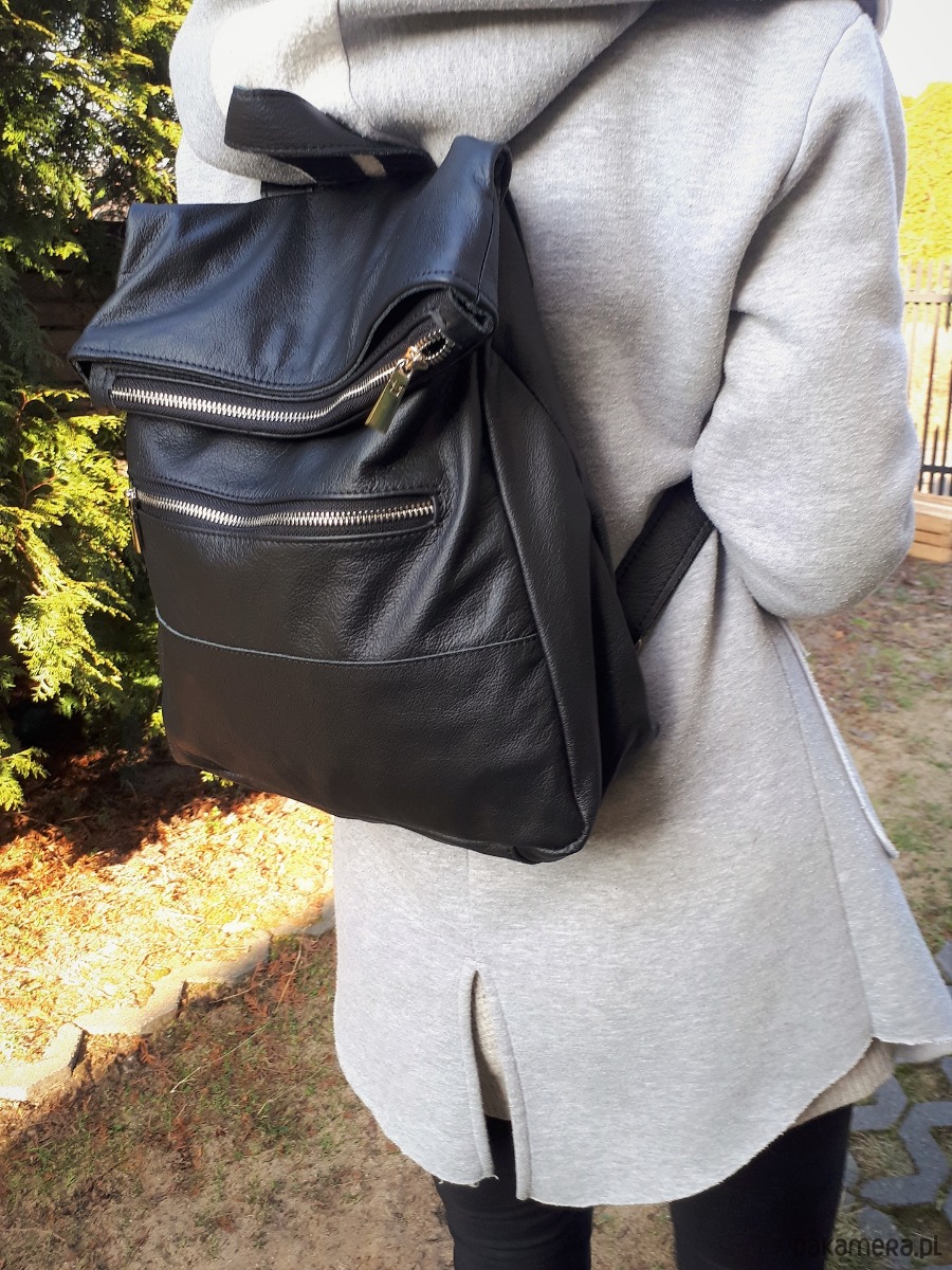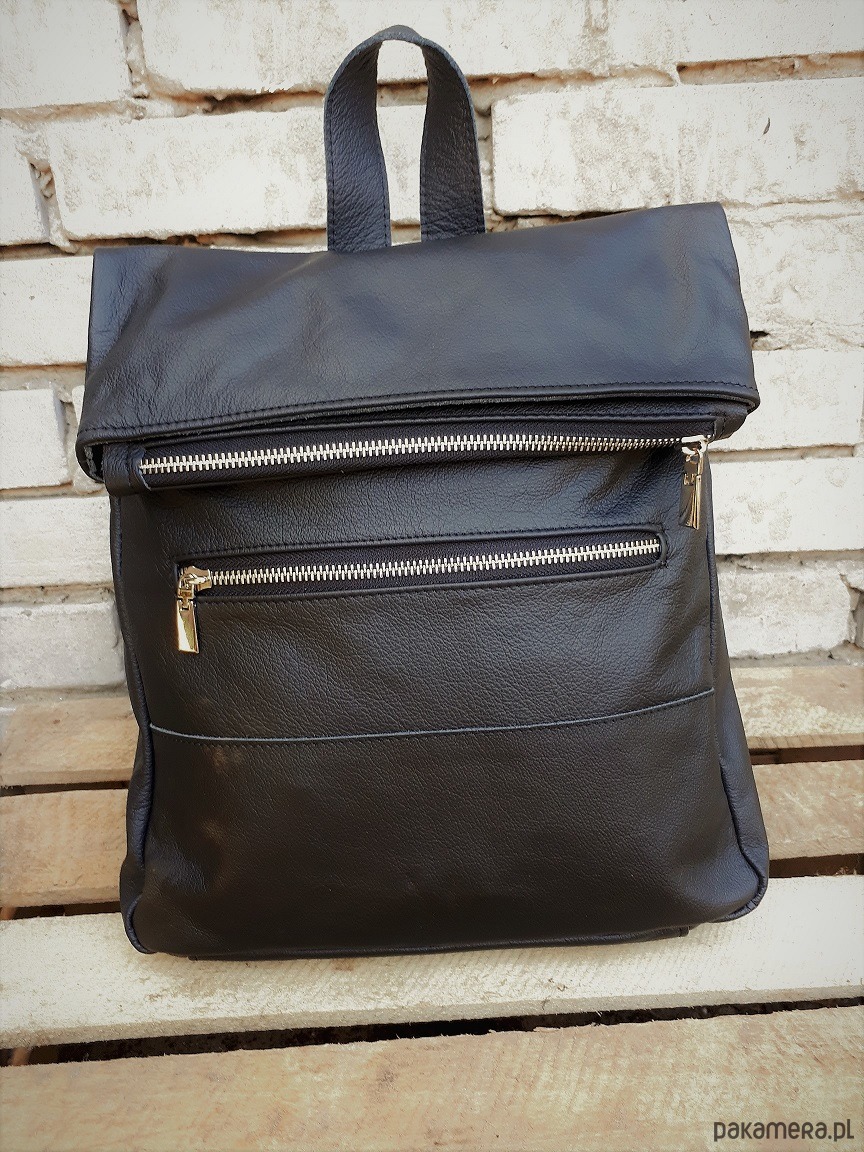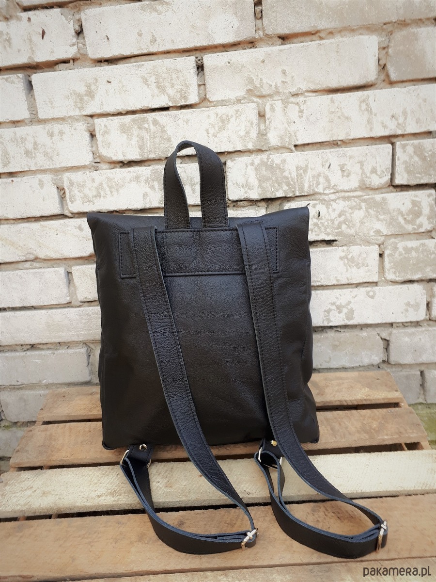 Plecak wykonany z licowej włoskiej skóry w czarnym kolorze.