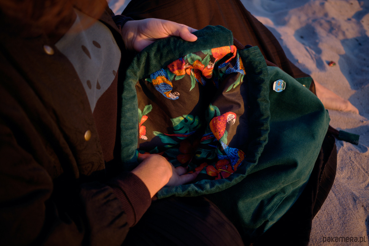 Każdy z plecaków zaprojektowałam tak, by nadawał się na górską wycieczkę, wyjście do sklepu czy na dzikie tańce. Plecak posiada zewnętrzną kieszeń zapinaną na rzep oraz karabińczyki, do których można dopiąć klucze, bidon czy ulotkę z programem festiwalu.