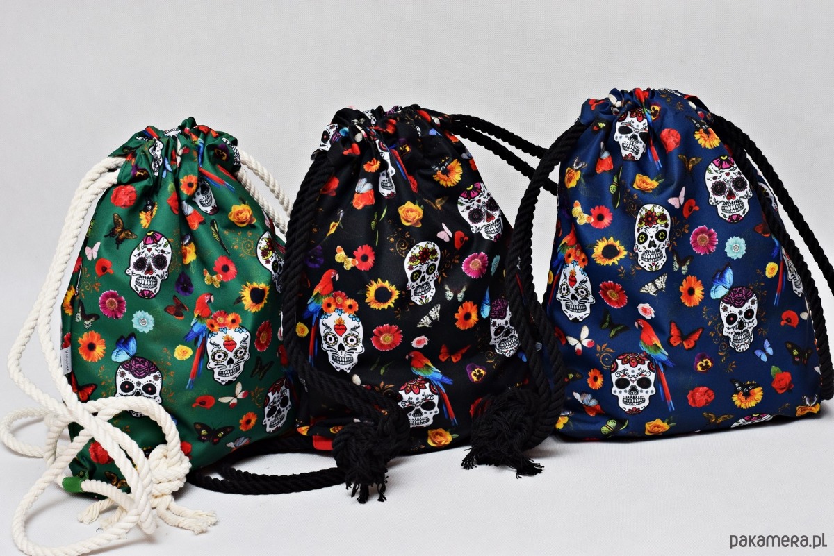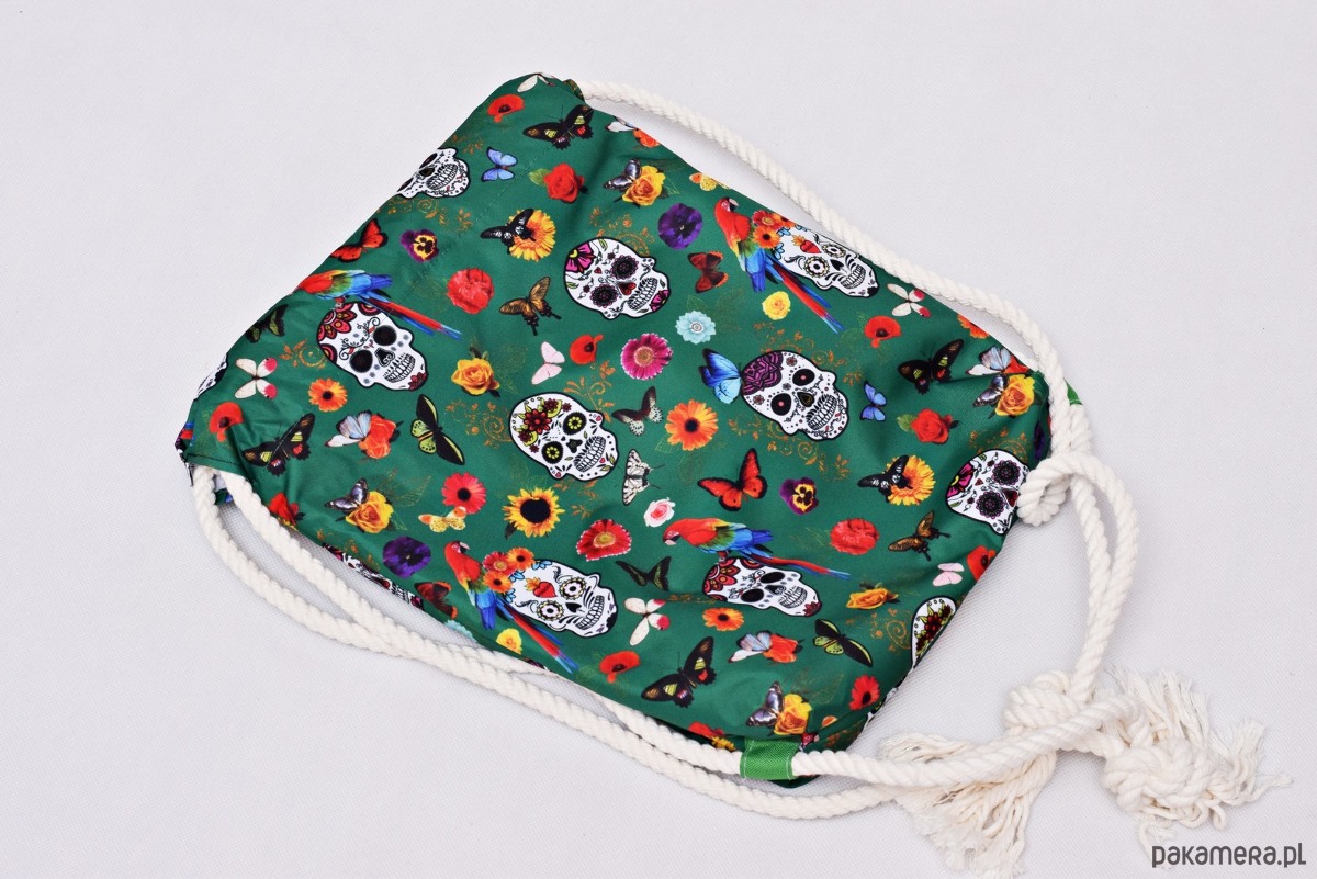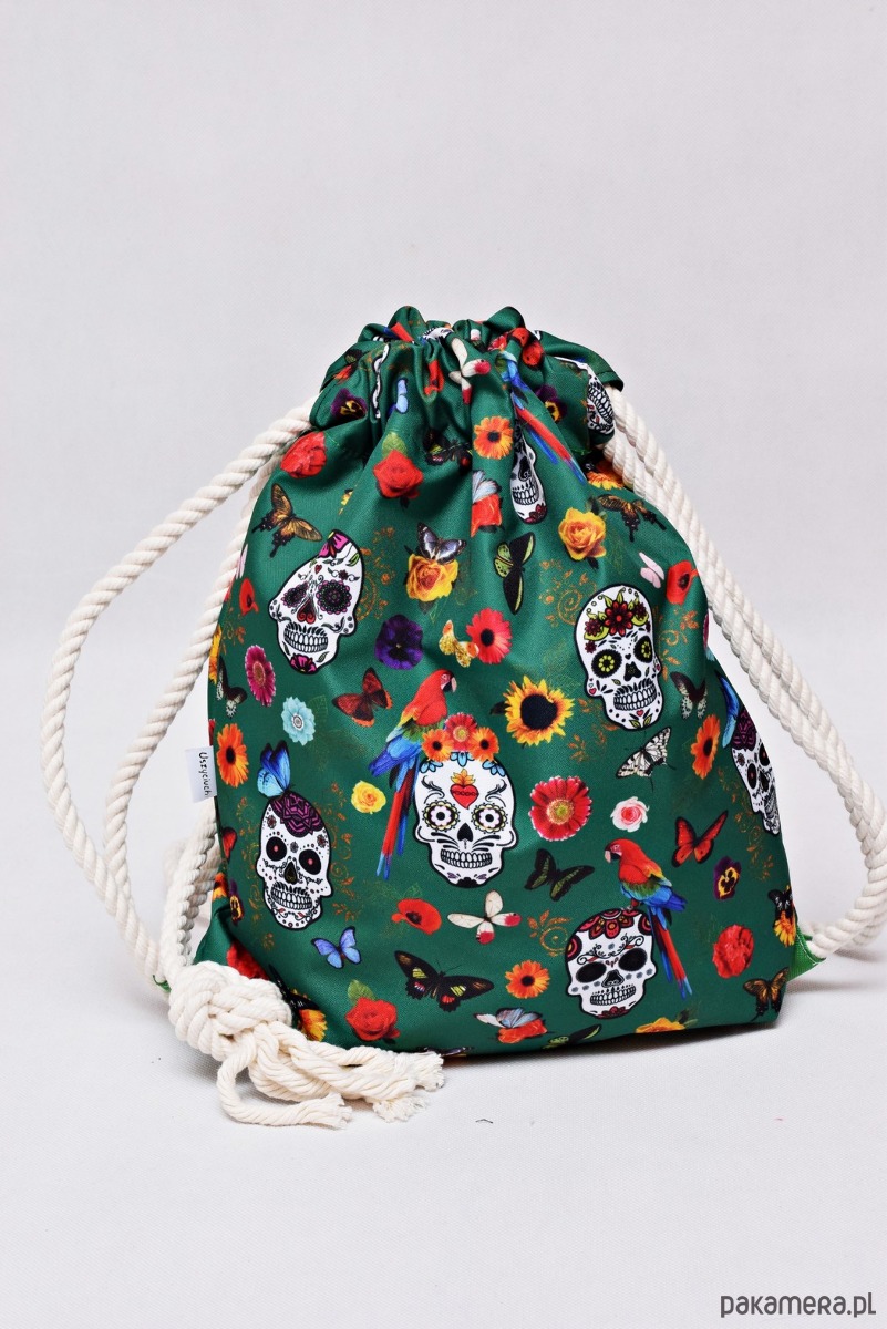 Worko-plecak wodoodporny zielone meksykańskie czaszki z zieloną podszewką
