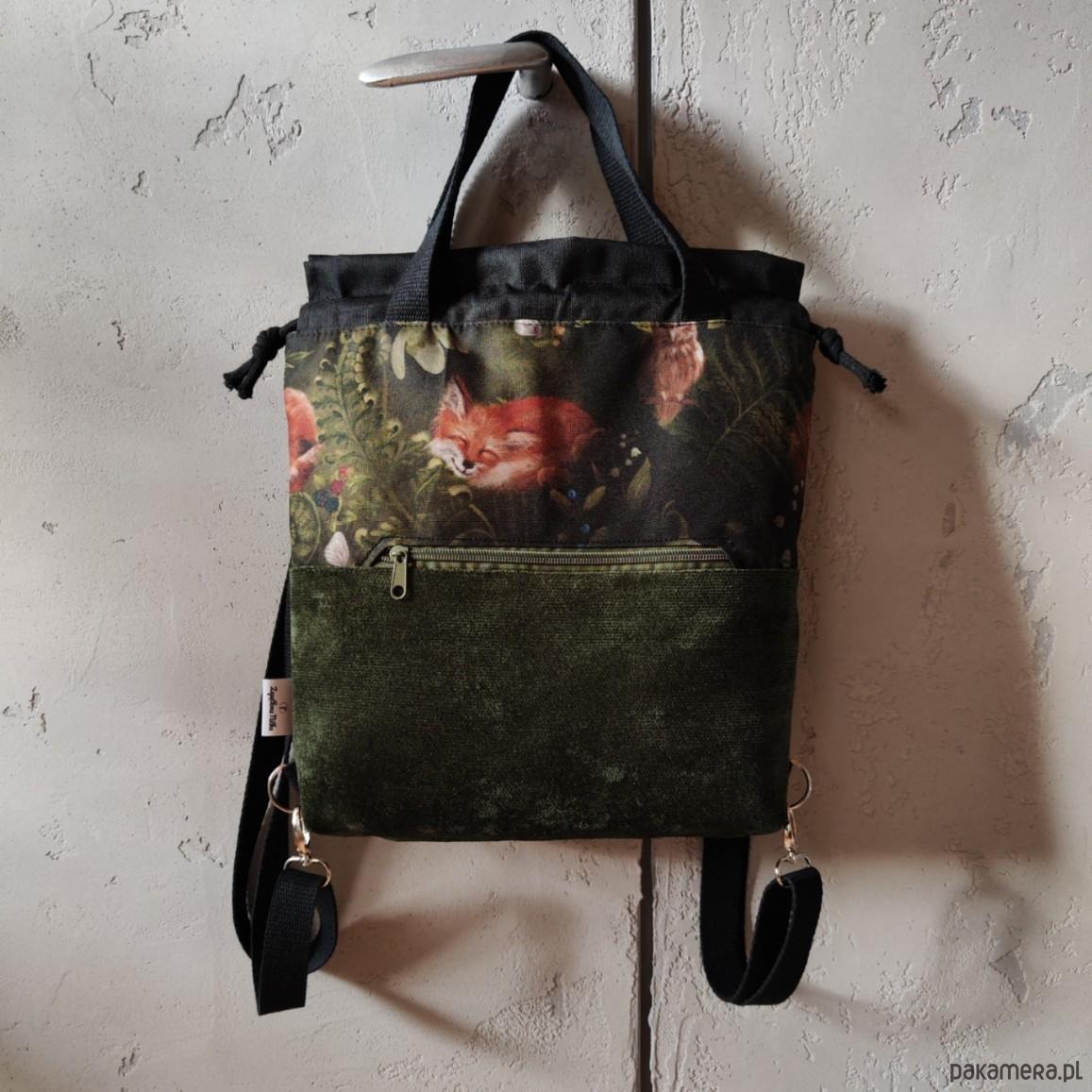 Plecako torebka 2w1 lisek w paprociach