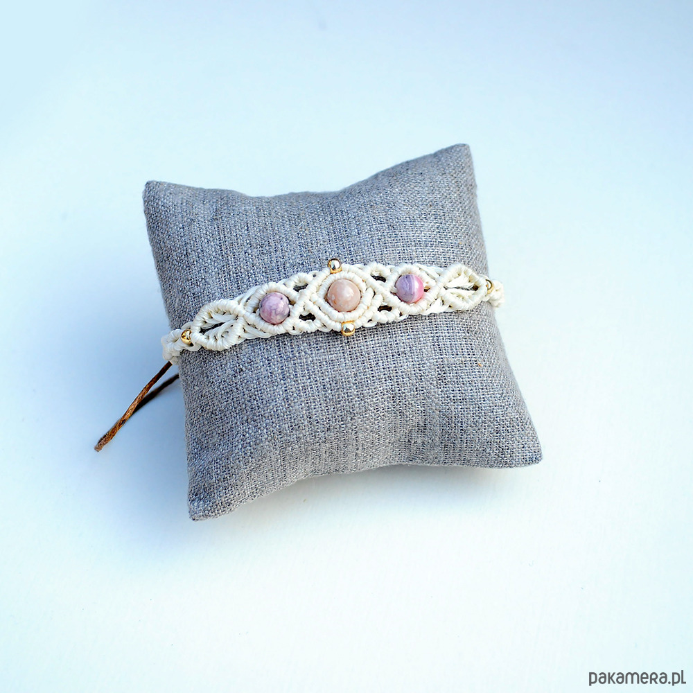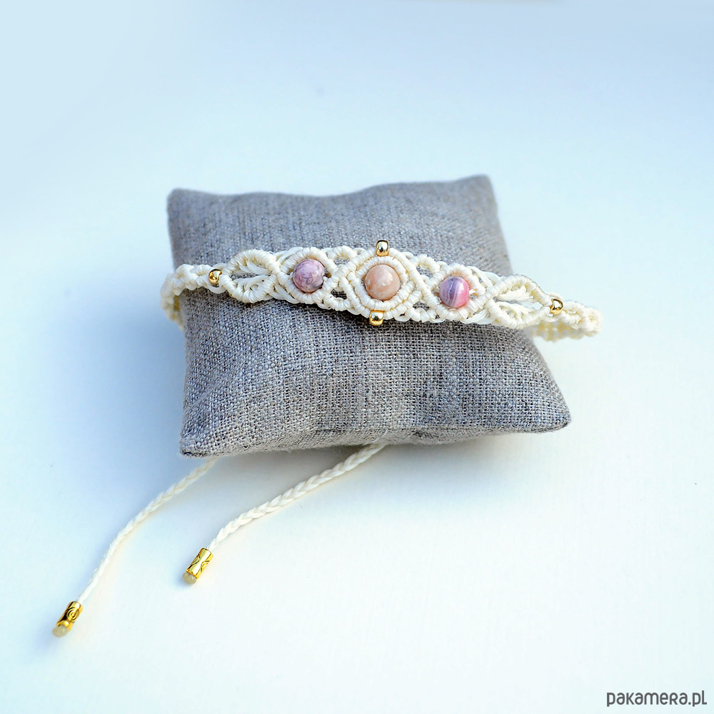 Pleciona Bransoletka Makrama Rodochrozyt Opal