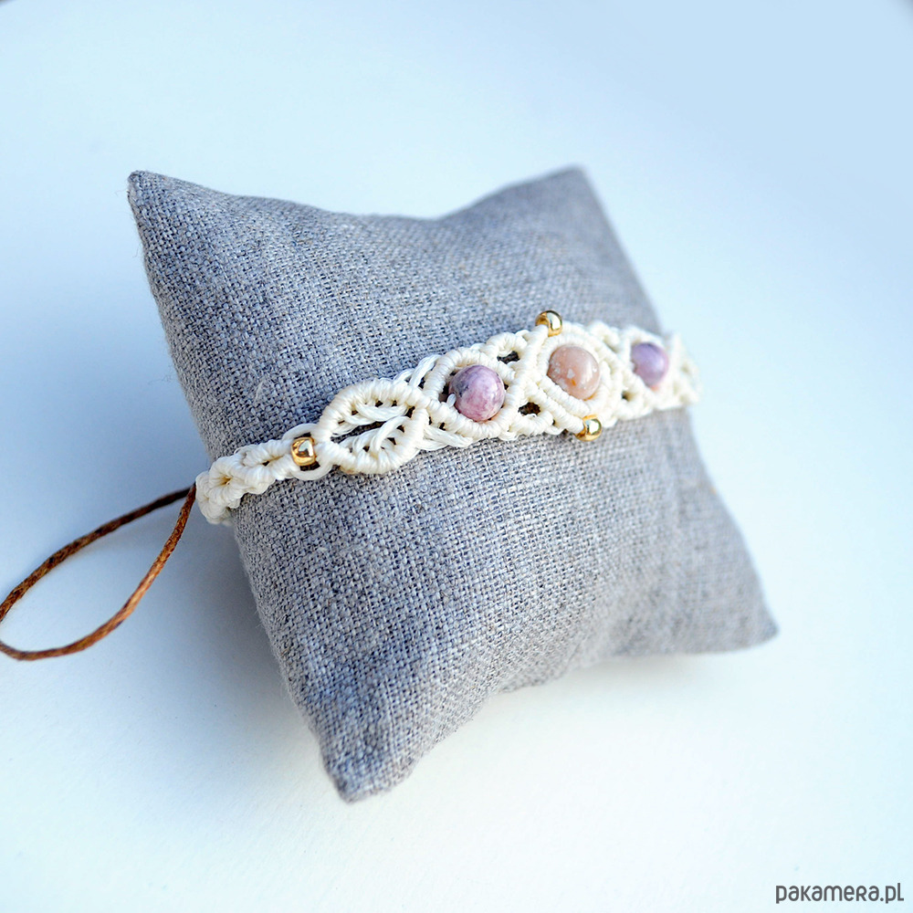 Bransoletka wykonana techniką makramy.