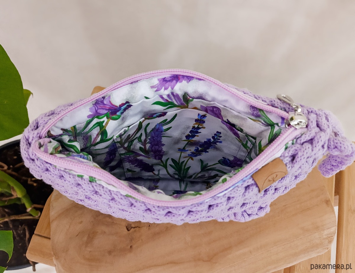 Elegancka i praktyczna kosmetyczka pomieści wszystkie Twoje drobiazgi. Wykonana została ręcznie na szydle ze sznurka bawełnianego w 100% z recyklingu. wewnątrz znajduje się piękna, kwiecista bawełniana podszewka, która będzie przywoływać uśmiech na Twojej twarzy za każdym razem kiedy zajrzysz do środka.