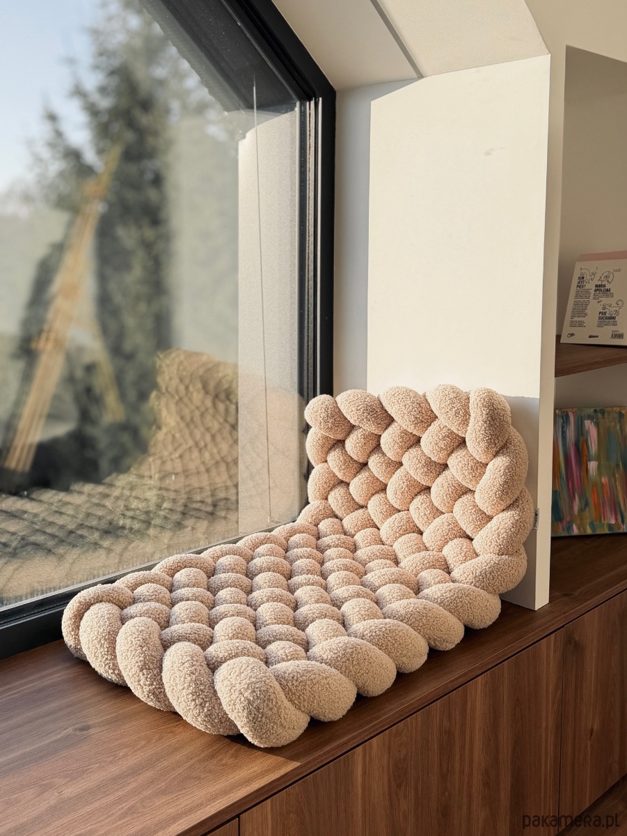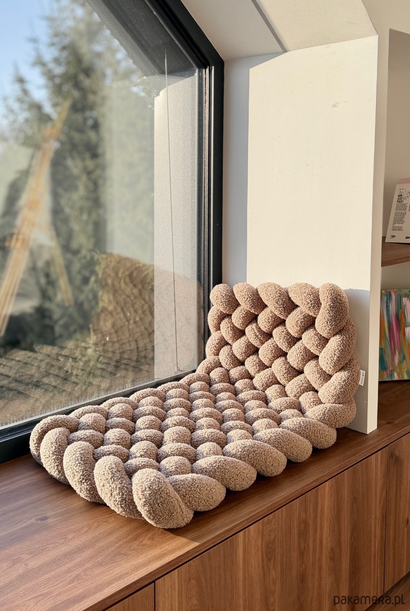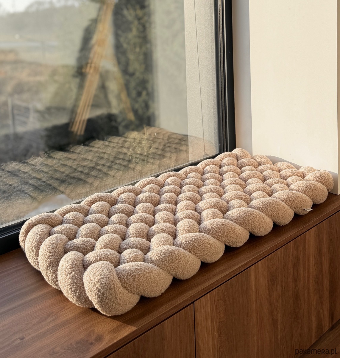 Pleciona mata podłogowa - boucle beżowa to miękka i funkcjonalna mata do pokoju dziecka, która sprawdzi się również jako mata na parapet lub dywan do zabawy.