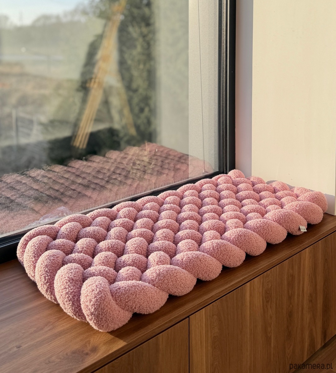 Pleciona mata podłogowa - boucle różowa to miękka i funkcjonalna mata do pokoju dziecka, która sprawdzi się również jako mata na parapet lub dywan do zabawy.