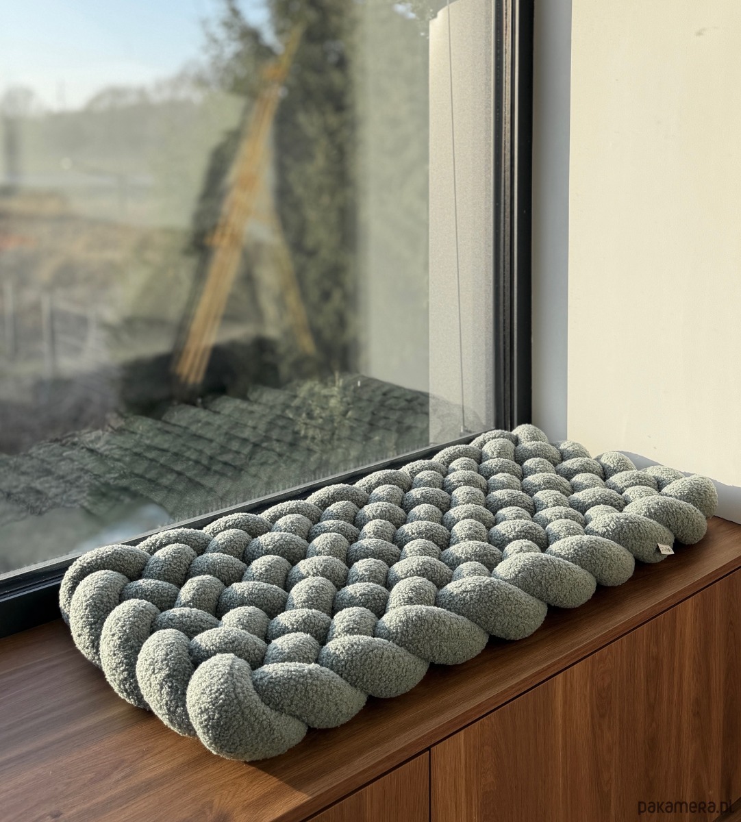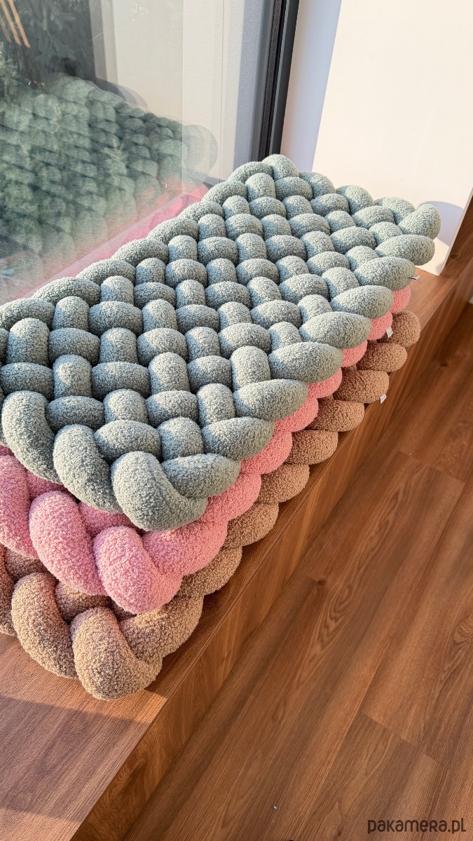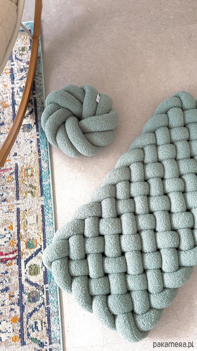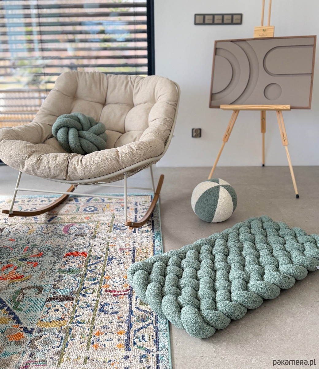 Pleciona mata podłogowa - boucle szałwiowa to miękka i funkcjonalna mata do pokoju dziecka, która sprawdzi się również jako mata na parapet lub dywan do zabawy.