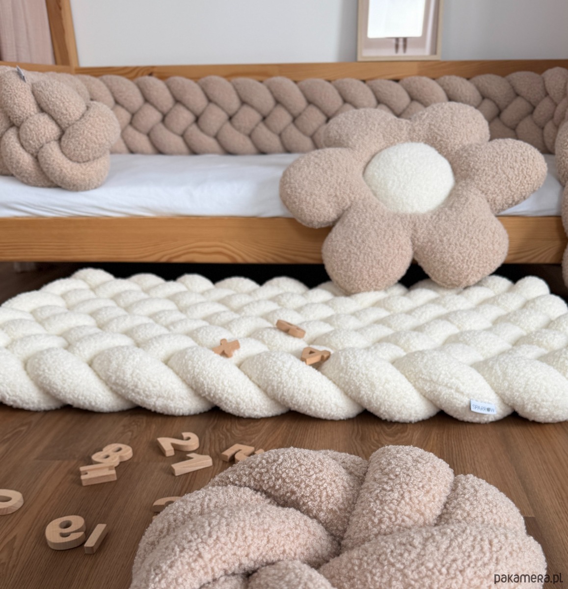 Pleciona mata podłogowa - boucle biała to miękka i funkcjonalna mata do pokoju dziecka, która sprawdzi się również jako mata na parapet lub dywan do zabawy.