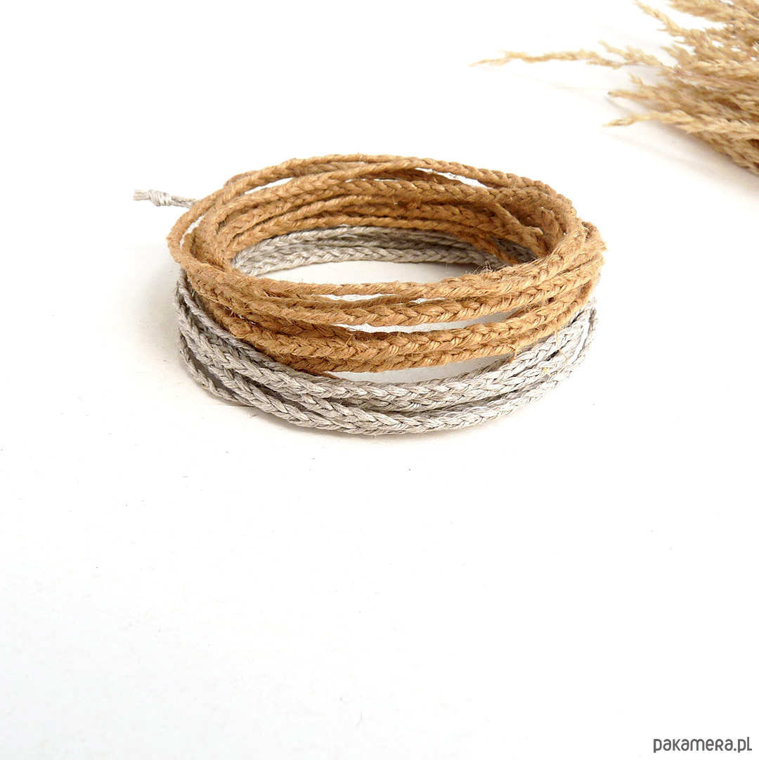 Druga bransoletka: len orzechowy, szerokość splotu 2,5 mm