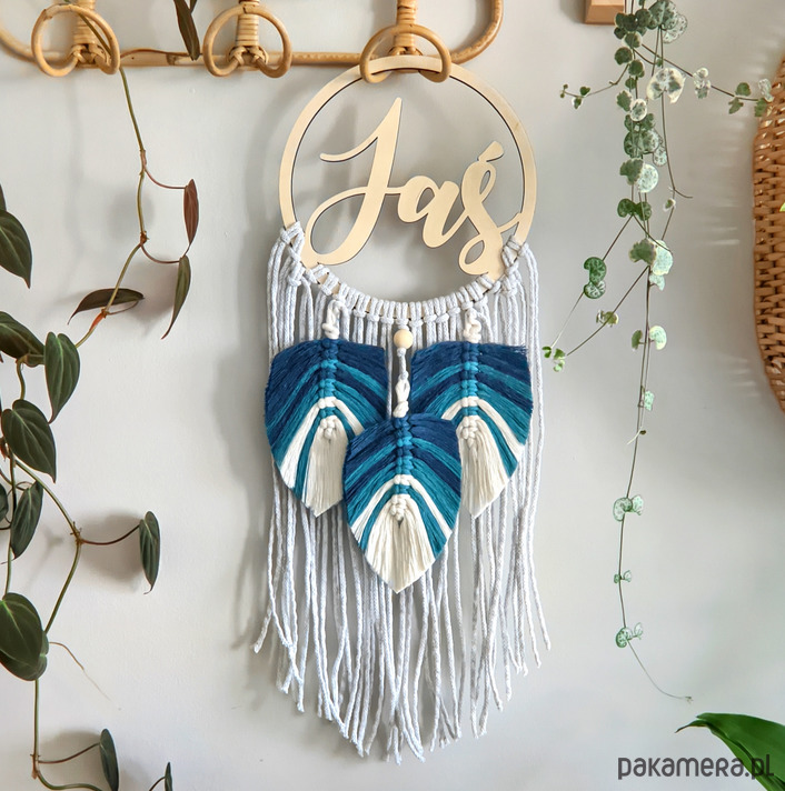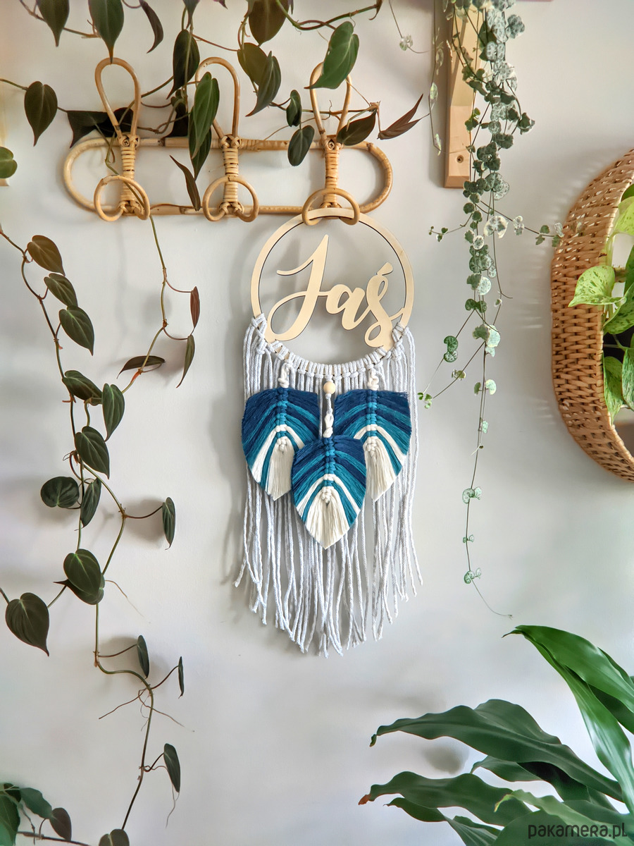 Pleciony łapacz snów personalizowany z imieniem, niebieskie dekoracje