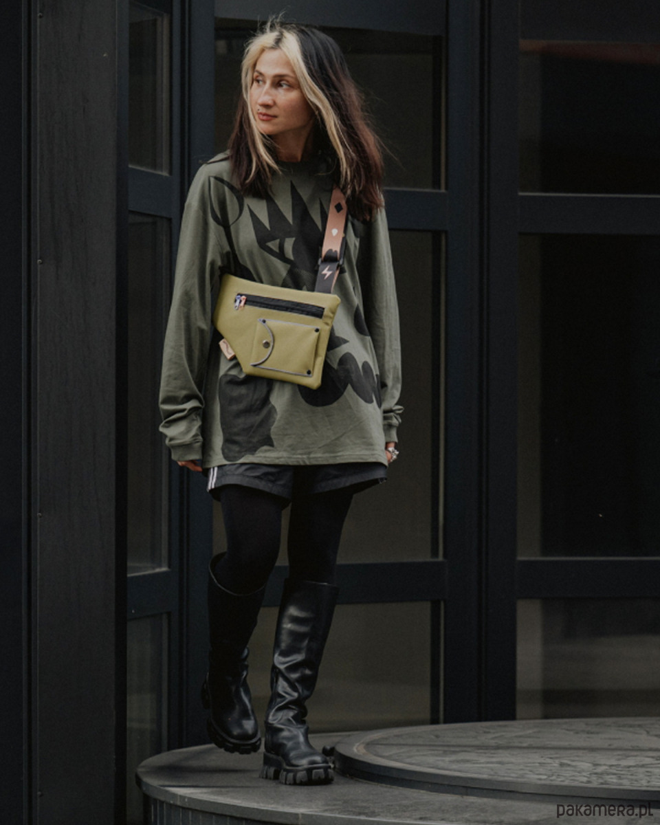 PLECKONERKA to przedmiot dla osób, które lubią rozwiązania 2 w 1. Można nosić ją przez ramię albo na plecach. Jej opływowy kształt sprawia, że doskonale dopasowuje się do kształtów ciała. Jest funkcjonalna oraz wygodna a dodatkowo oryginalna w swej formie. Została wykonana z wegańskiego, wodoodpornego materiału. Jest łatwa w utrzymaniu czystości, ponieważ bez problemu można ją prać w pralce lub przetrzeć wilgotną szmatką z odrobiną mydła lub płynu do mycia naczyń.