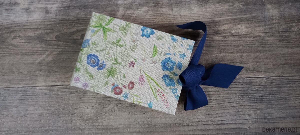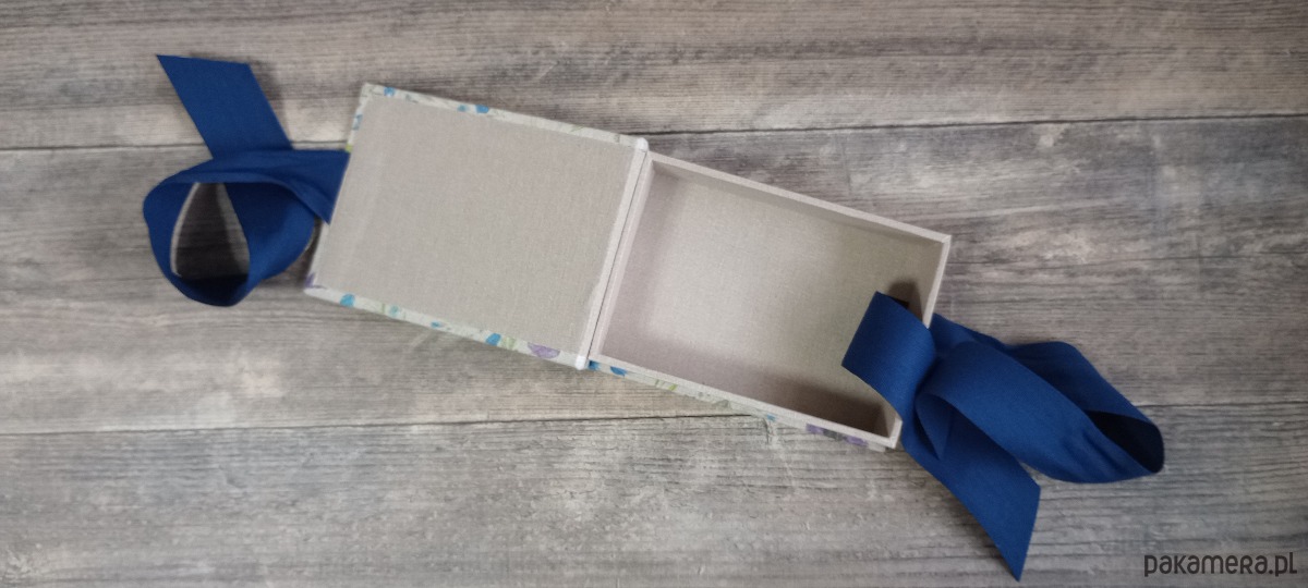 Eleganckie pudełko na zdjęcia wykonane z grubej tektury oklejonej płótnem