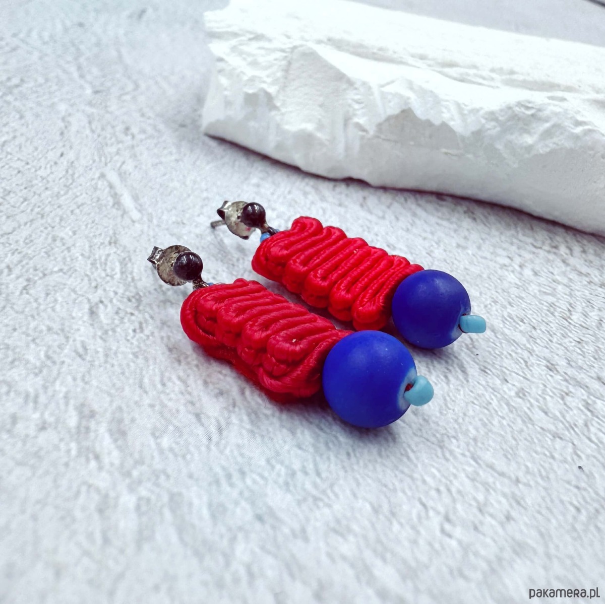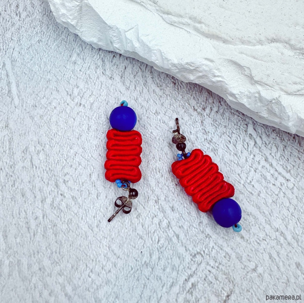 Kolczyki uszyte od podstaw ze sznurków sutasz, szklanych kulek i koralików Toho.