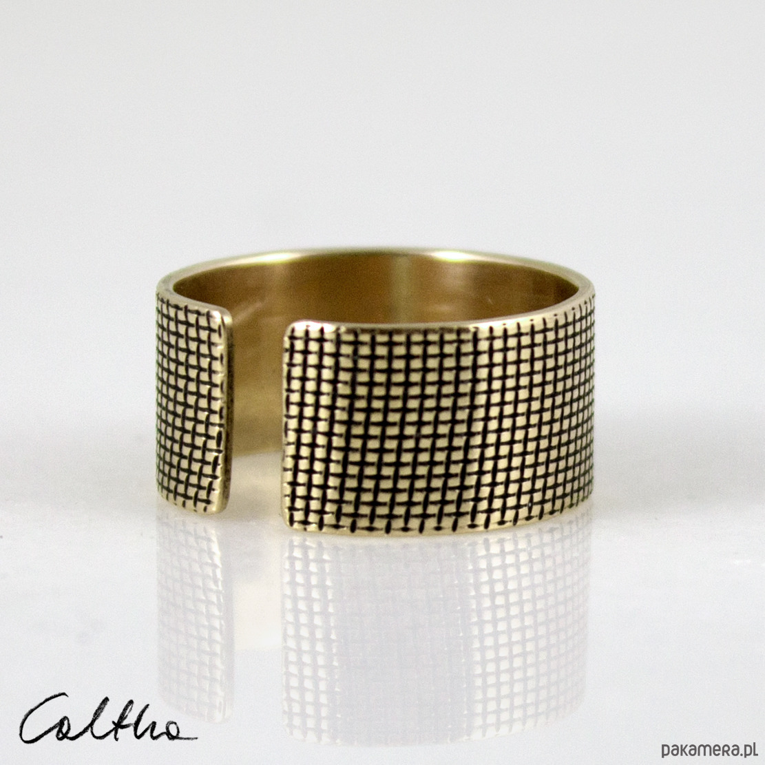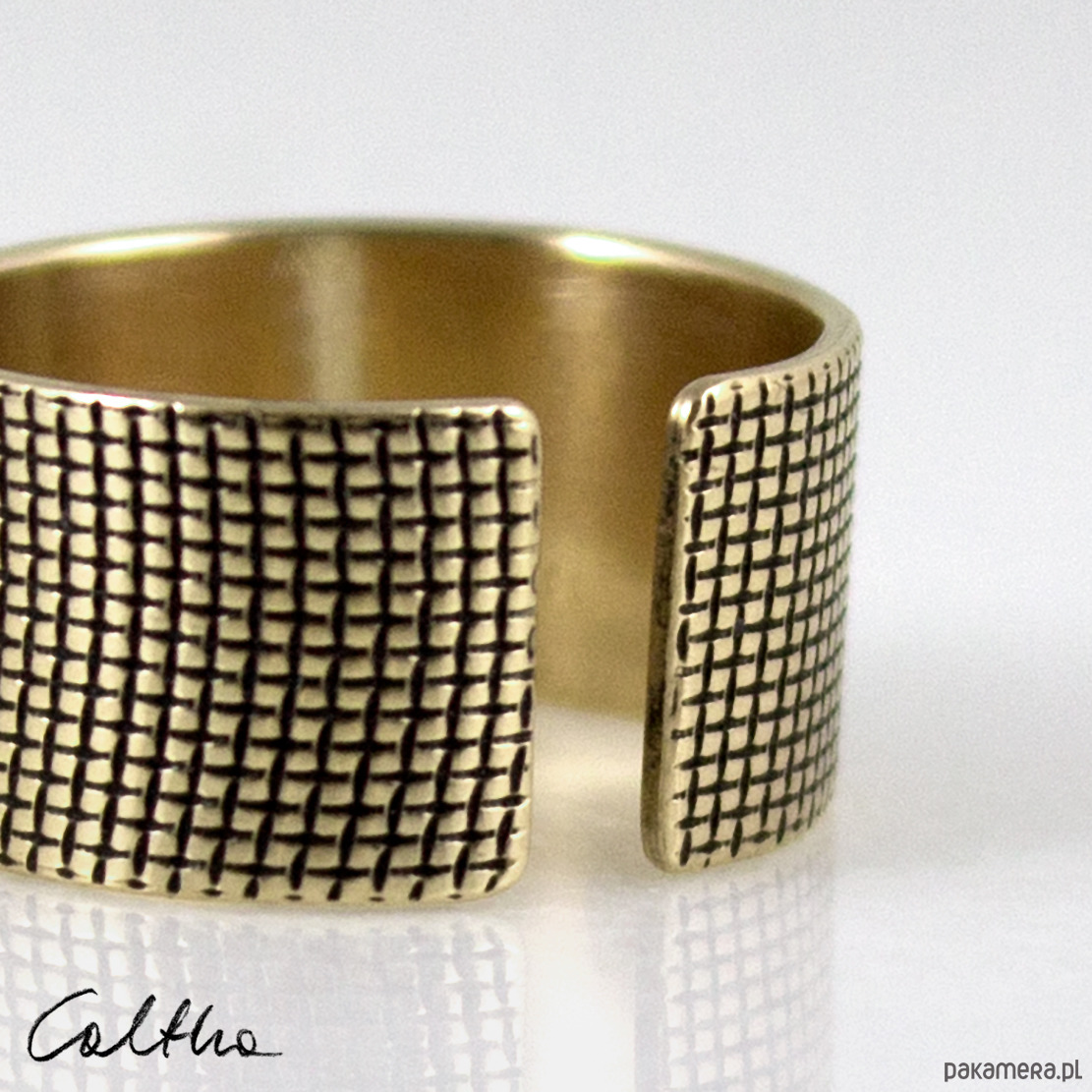 Pierścionek został wykonany z mosiądzu, jego szerokość to ok 1 cm.