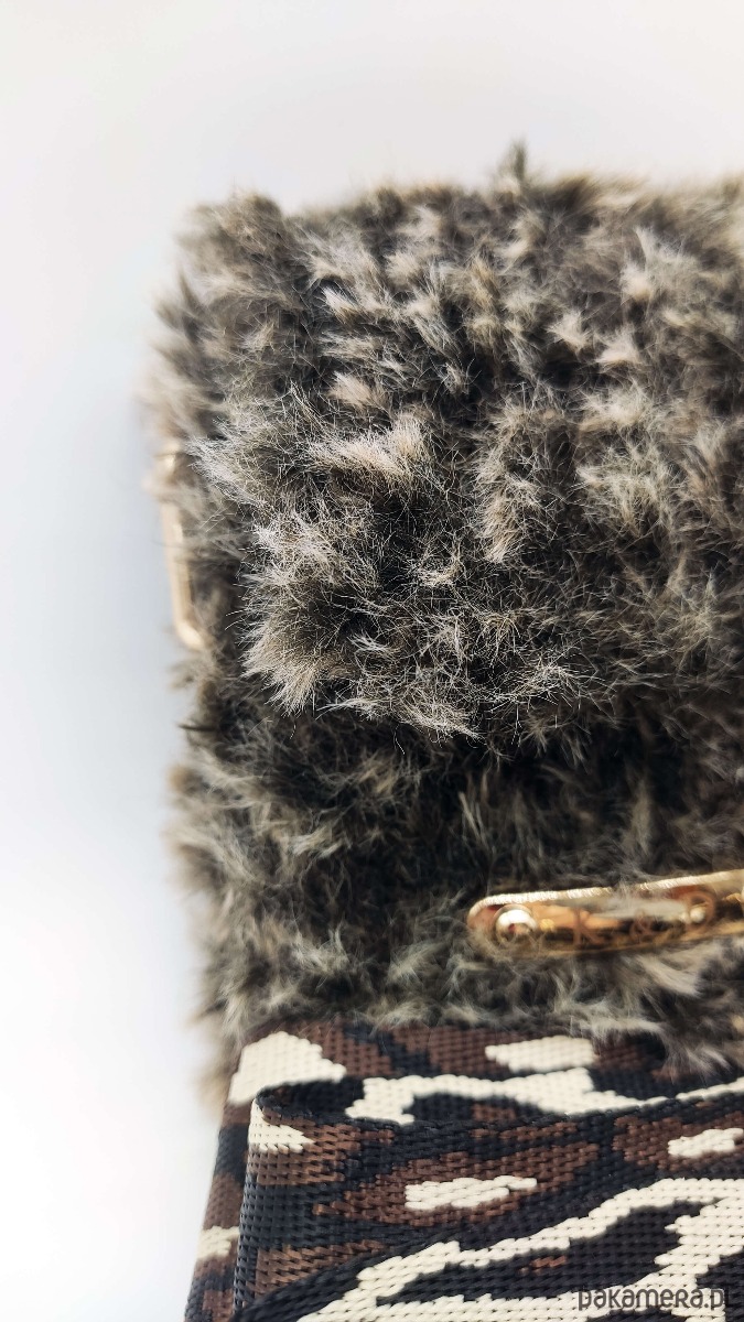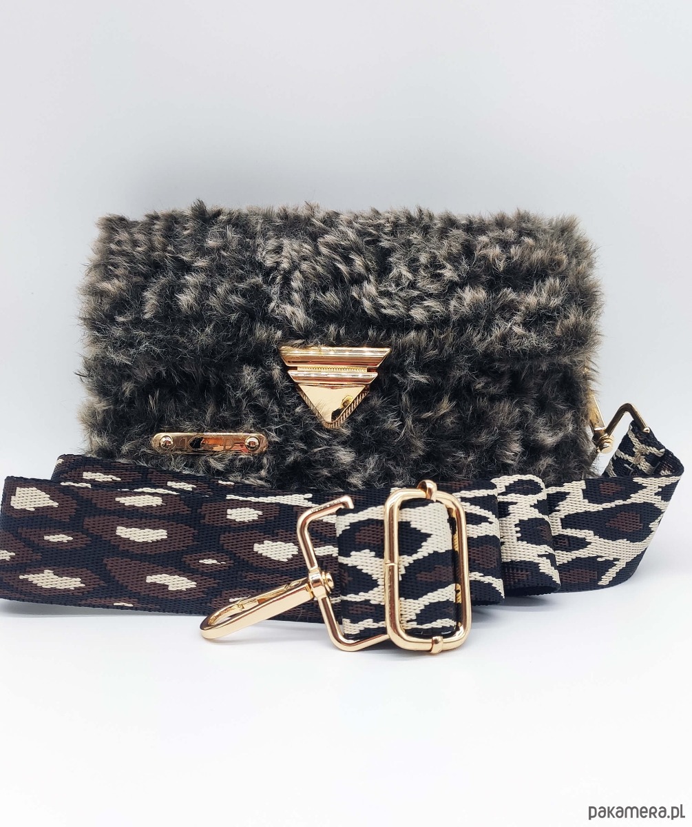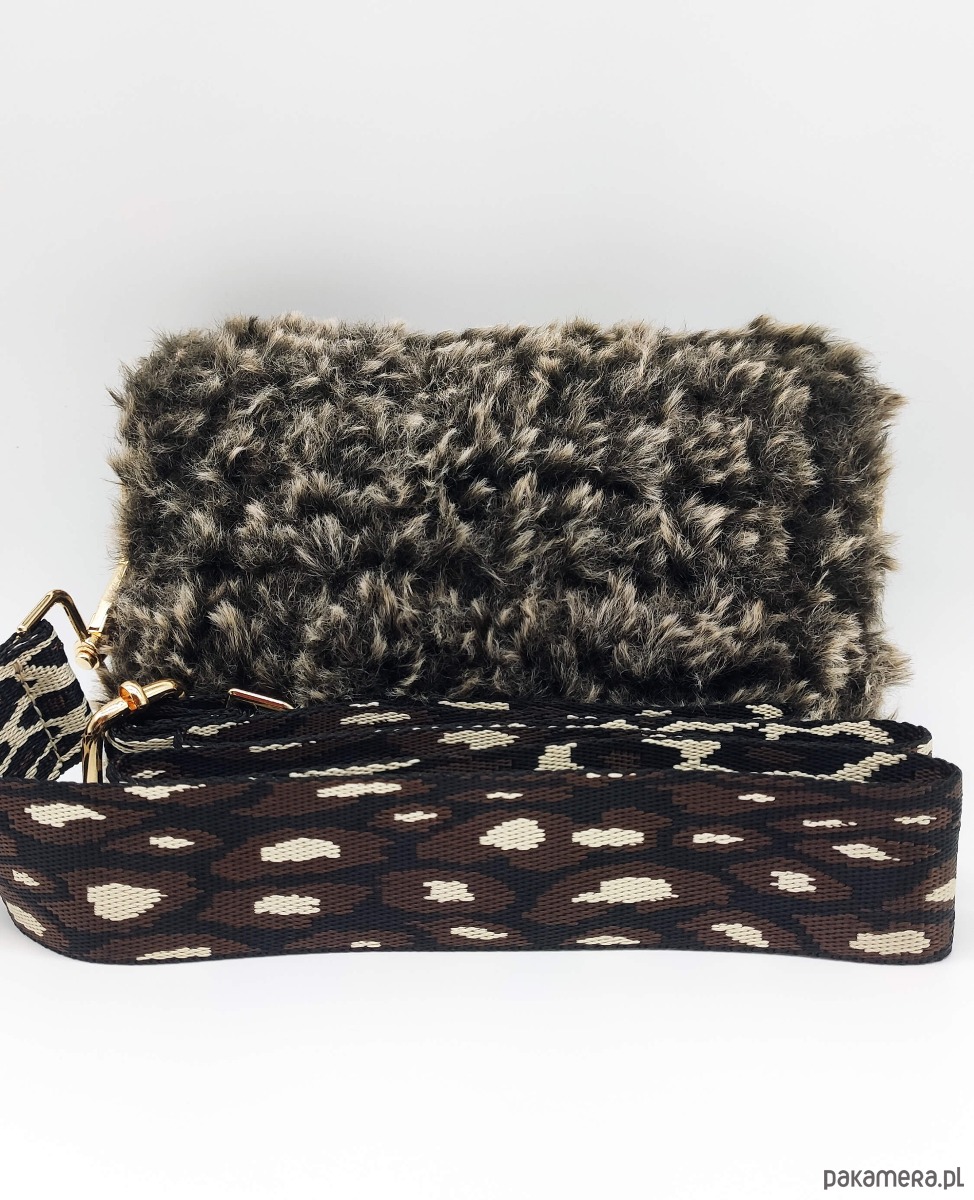 Poznaj torebkę, która łączy w sobie urok rękodzieła z nutą nowoczesnej elegancji. Wykonana ręcznie z pluszowej włóczki o egzotycznym wyglądzie, zachwyca miękką, puszystą fakturą i niezwykłą lekkością. Każdy detal został dopracowany z precyzją — od złotych elementów po kontrastowy pasek w stylu zebry, który dodaje całości modowego charakteru.