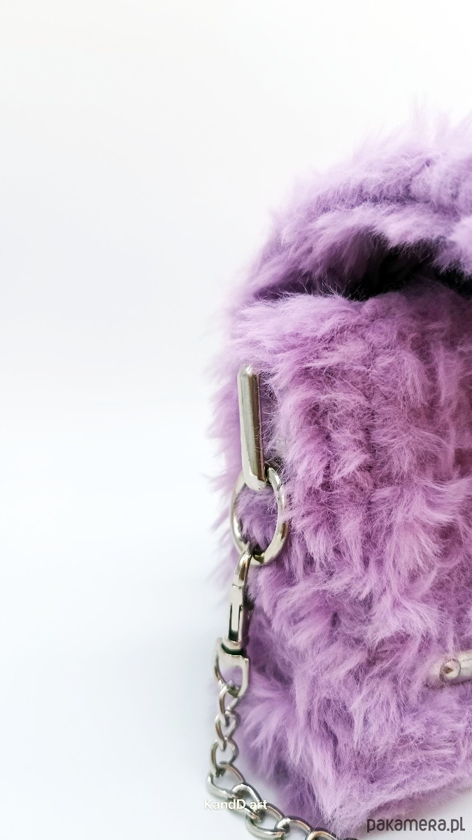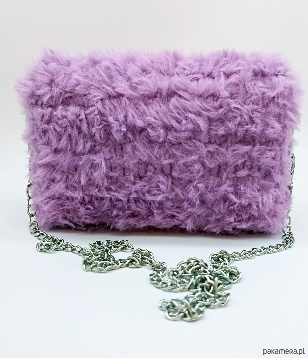 Poznaj torebkę, która łączy w sobie urok rękodzieła z nutą nowoczesnej elegancji. Wykonana ręcznie z pluszowej fioletowej włóczki , zachwyca miękką, puszystą fakturą i niezwykłą lekkością. Każdy detal został dopracowany z precyzją — od złotych elementów po kontrastowy pasek w stylu zebry, który dodaje całości modowego charakteru.