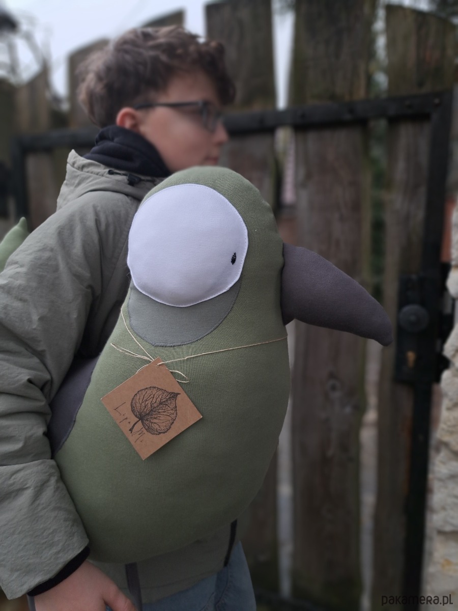 Poznaj Ptaka – ręcznie szytą pluszanko-poduszkę, stworzoną z miłości dla dzieci i rodzinnego tworzenia.