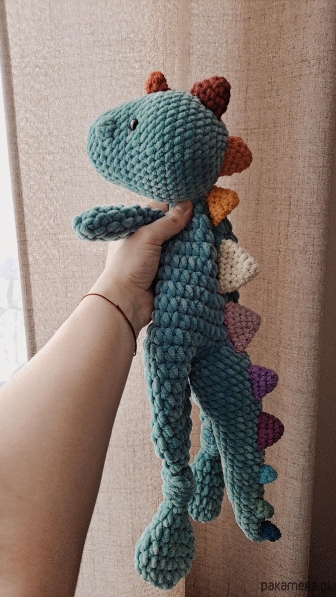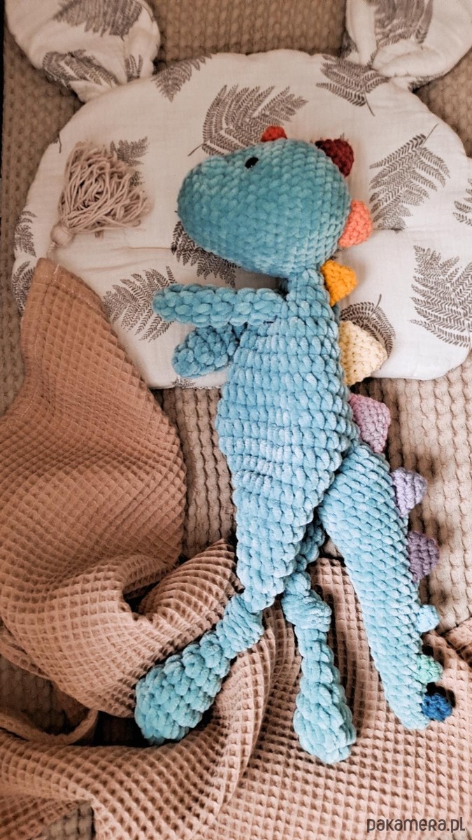Tęczowy Dinozaur - ręcznie robiona przytulanka dla najmłodszych. Dostępna od ręki!