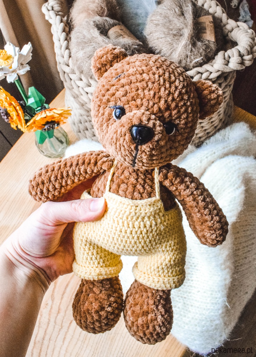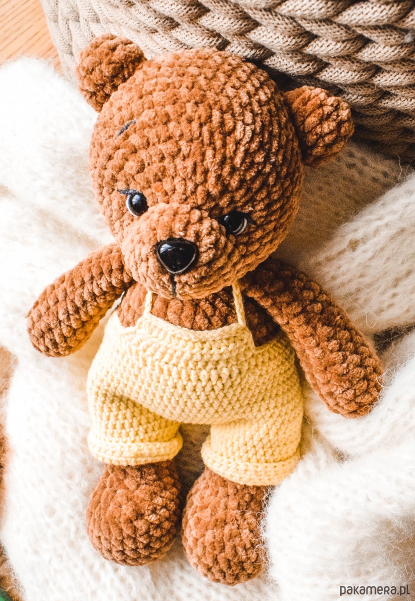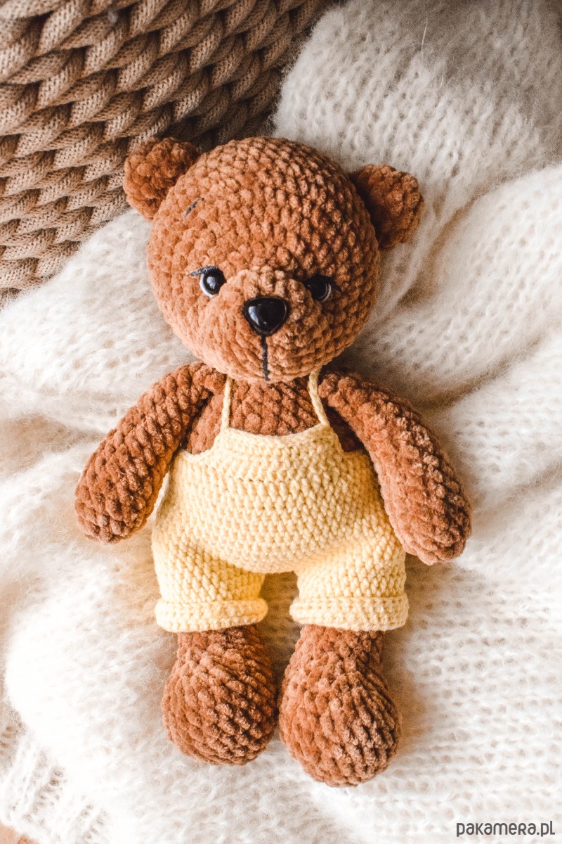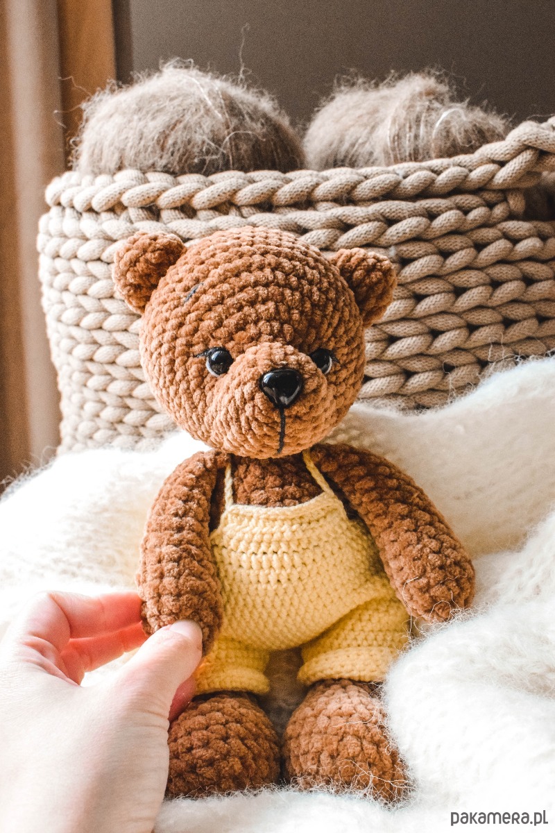 Został wykonany ręcznie na szydełku, z pluszowej włóczki. Miękki, milutki, idealny przyjaciel na długie lata.