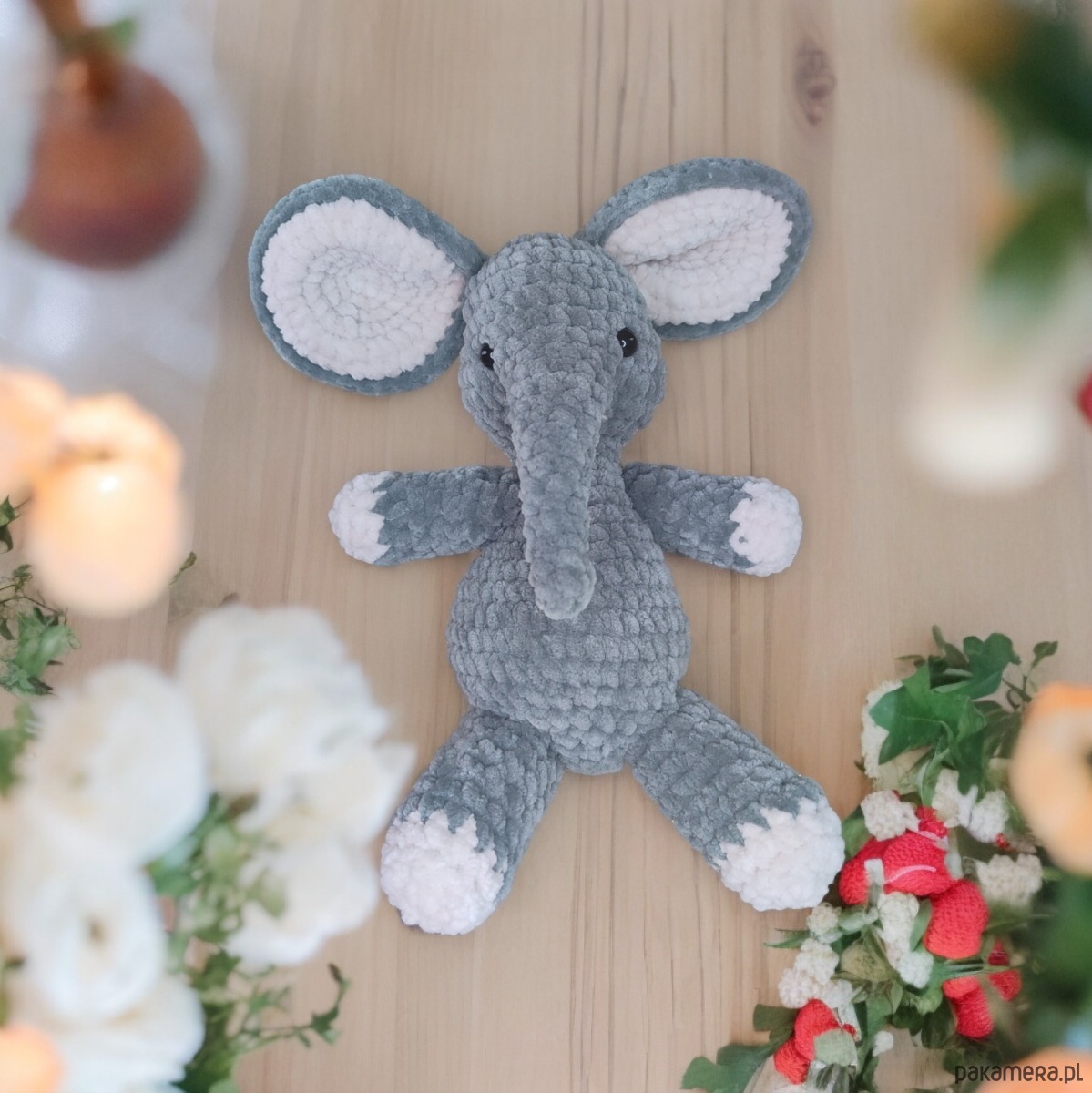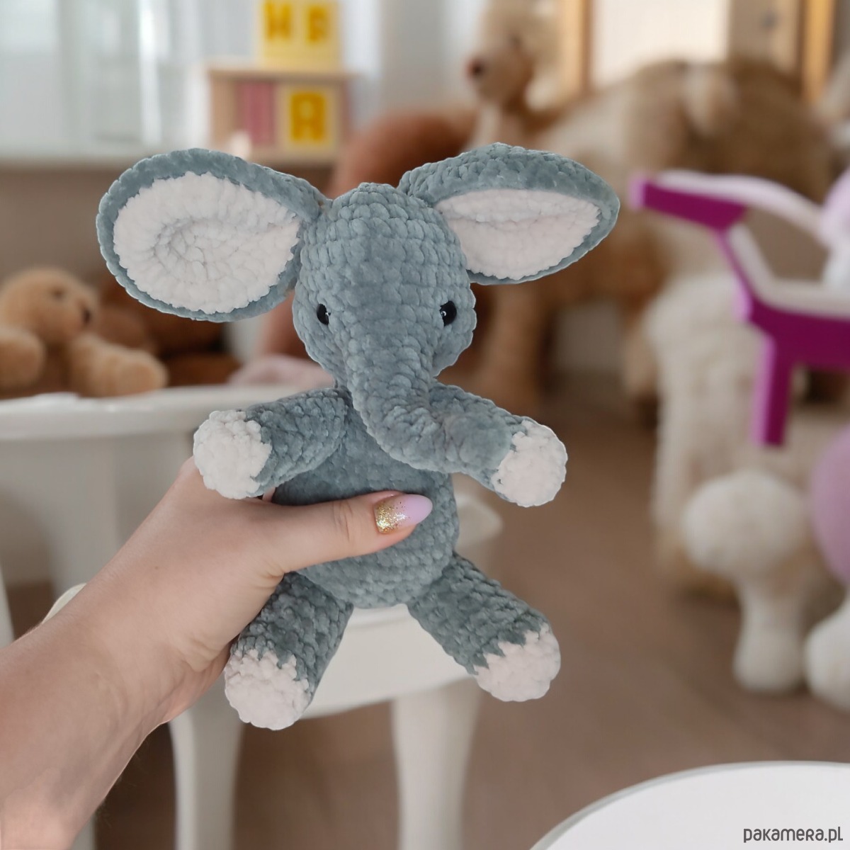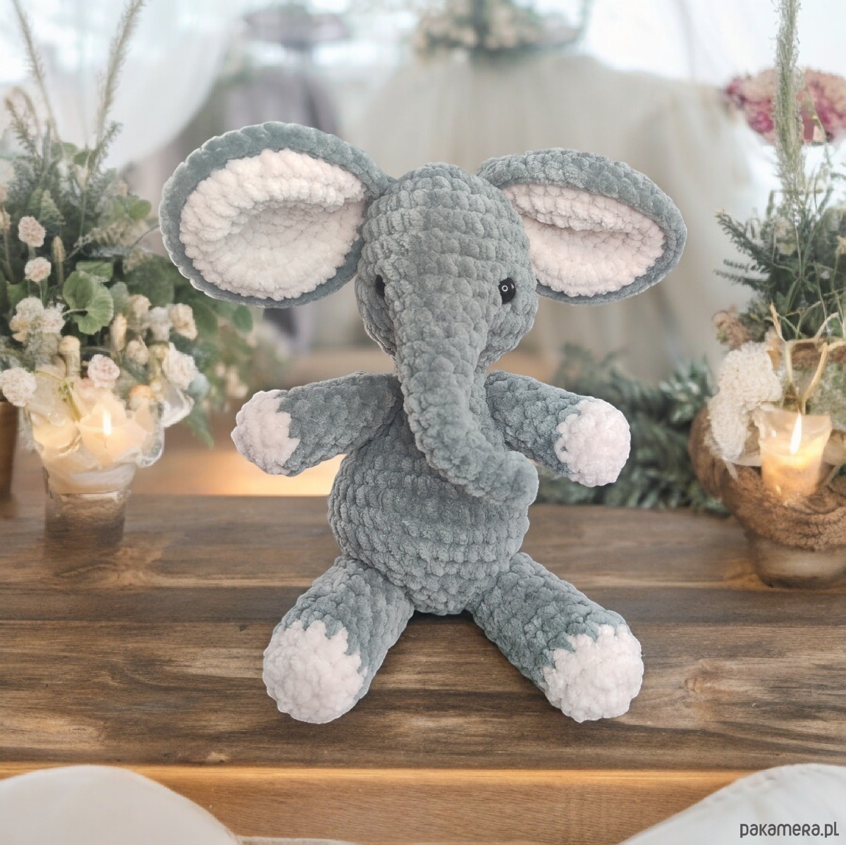 🐘✨ Pluszowy słoń wykonany ręcznie na szydełku z aksamitnej włóczki, zapewnia wyjątkową miękkość i delikatność w dotyku, dzięki czemu jest idealny do przytulania i zabawy. Wypełnienie wysokiej jakości hypoalergiczną kulką silikonową sprawia, że zabawka jest odpowiednia dla dzieci, nawet tych o delikatnej skórze czy alergiach. Oczy słonia są zaciskowe (tzw. "bezpieczne"), dzięki czemu śmiało mogą bawić się nim nawet najmłodsze dzieci.🌈🥰