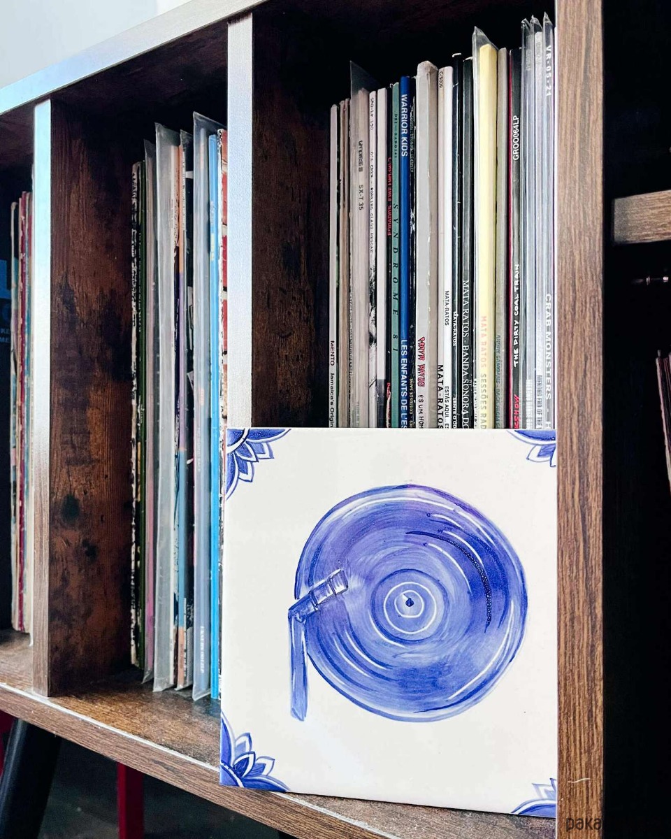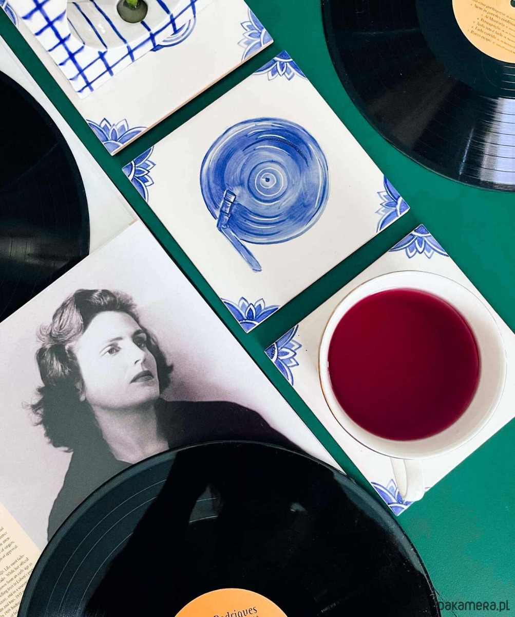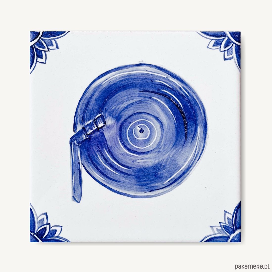 Ten kafelek należy do cyklu „Gostos” – małych historii o rzeczach, które sprawiają nam radość. Maluję je ręcznie kobaltem na białej ceramice, inspirując się portugalskimi azulejos. Każdy kafelek powstaje osobno, dlatego nie ma dwóch identycznych.
