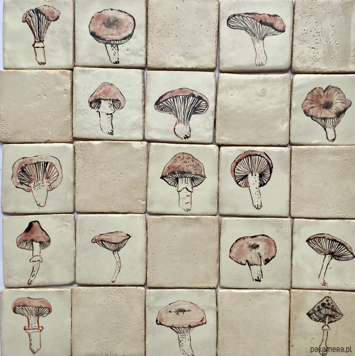 Zestaw 25 płytek ceramicznych, ręcznie formowanych, szkliwionych i malowanych, rozmiar jednej płytki to 10/10cm,płytki jak każde artkafle są odpone na temperatury, wodę, ścieralność, montaż standardowy, czas oczekiwania ok 4 tygodni.