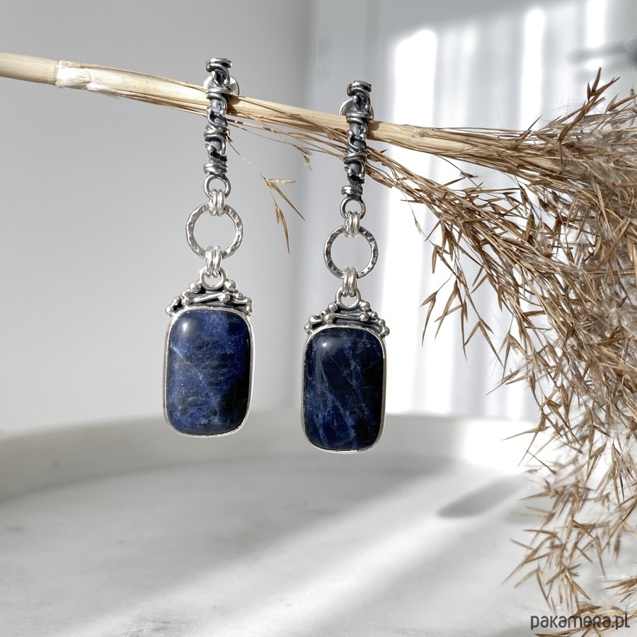 Wykonane od podstaw ręcznie, niezwykle efektowne kolczyki z sodalitem.