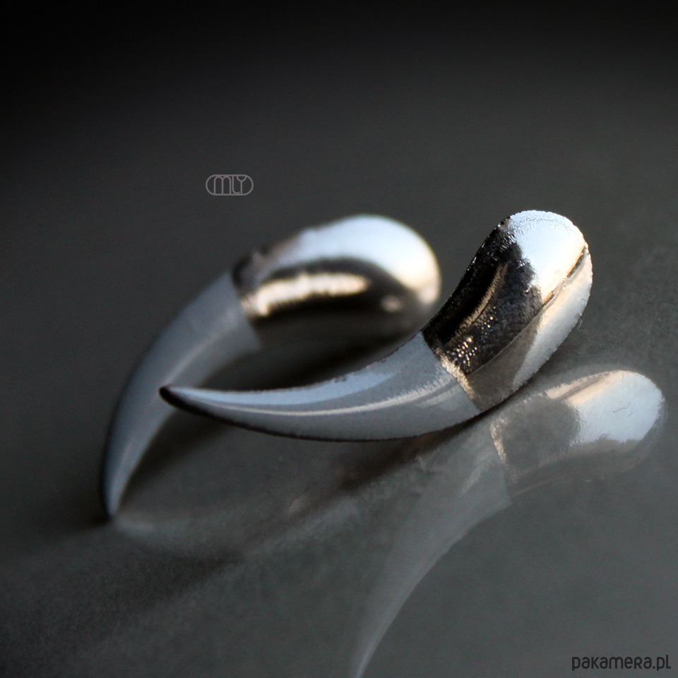 Ceramiczne podłużne kolczyki, ręcznie wykonane z delikatnej gliny kamionkowej, jednostronnie szkliwione mieszanką szarych szkliw z efektem plamek, tył matowy, na antyalergicznych sztyftach w kolorze srebrnym.długość ok 2,8cm. Polecam