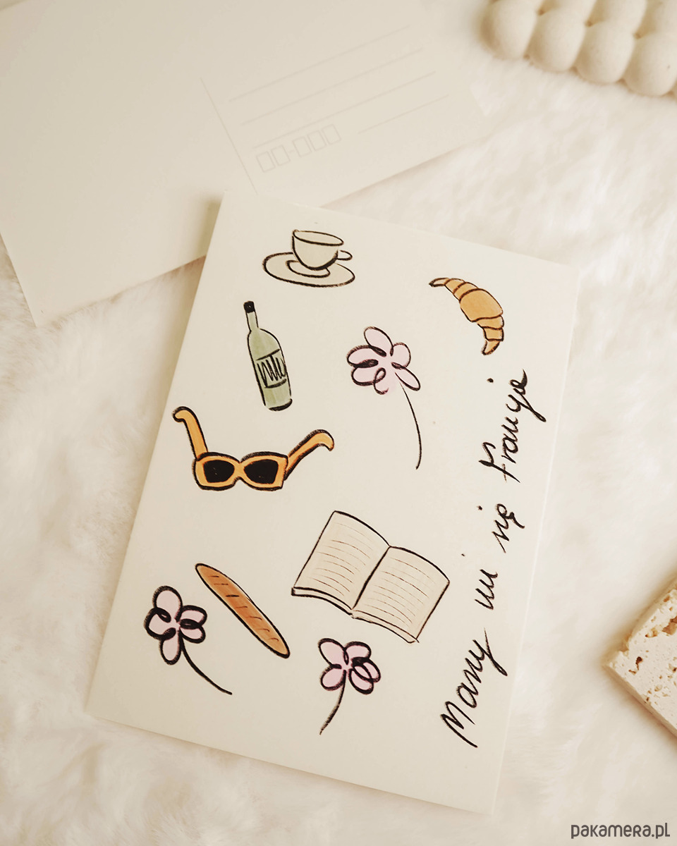 W zestawie z każdą pocztówką znajduje się dopasowana koperta.