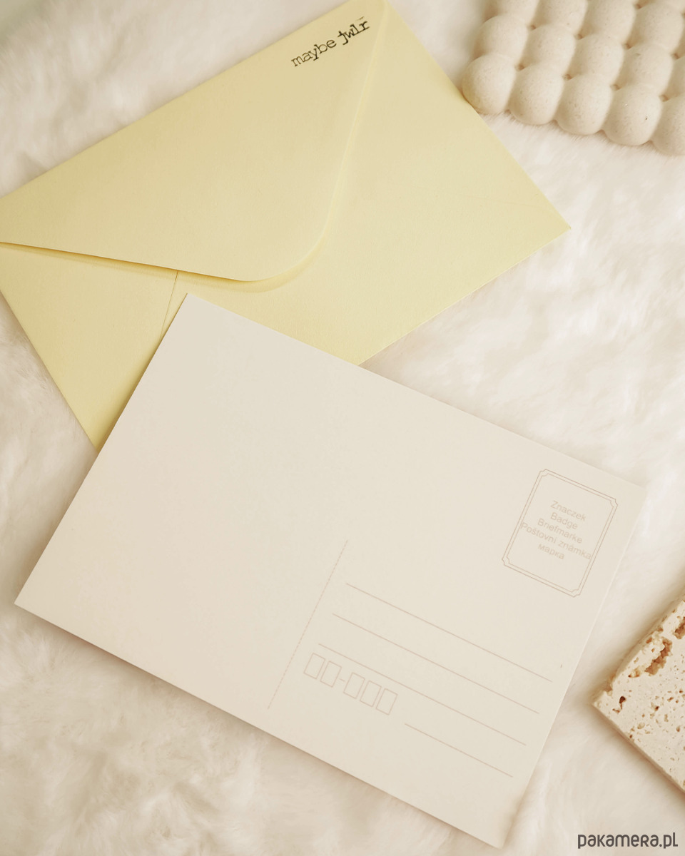 W zestawie z każdą pocztówką znajduje się dopasowana koperta.