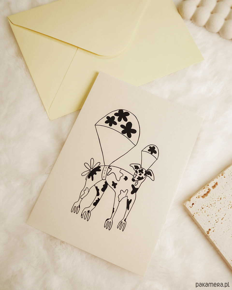 W zestawie z każdą pocztówką znajduje się dopasowana koperta.