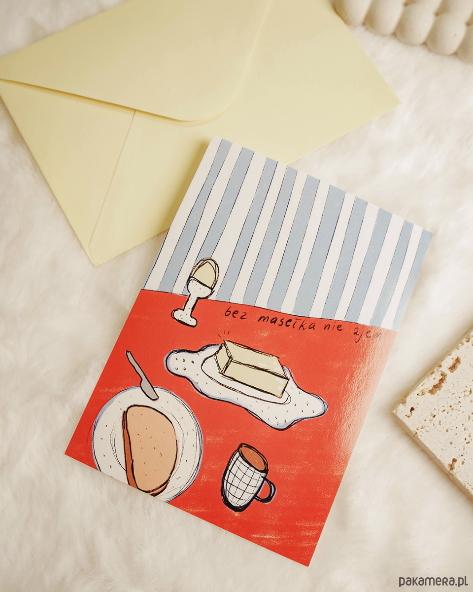W zestawie z każdą pocztówką znajduje się dopasowana koperta.