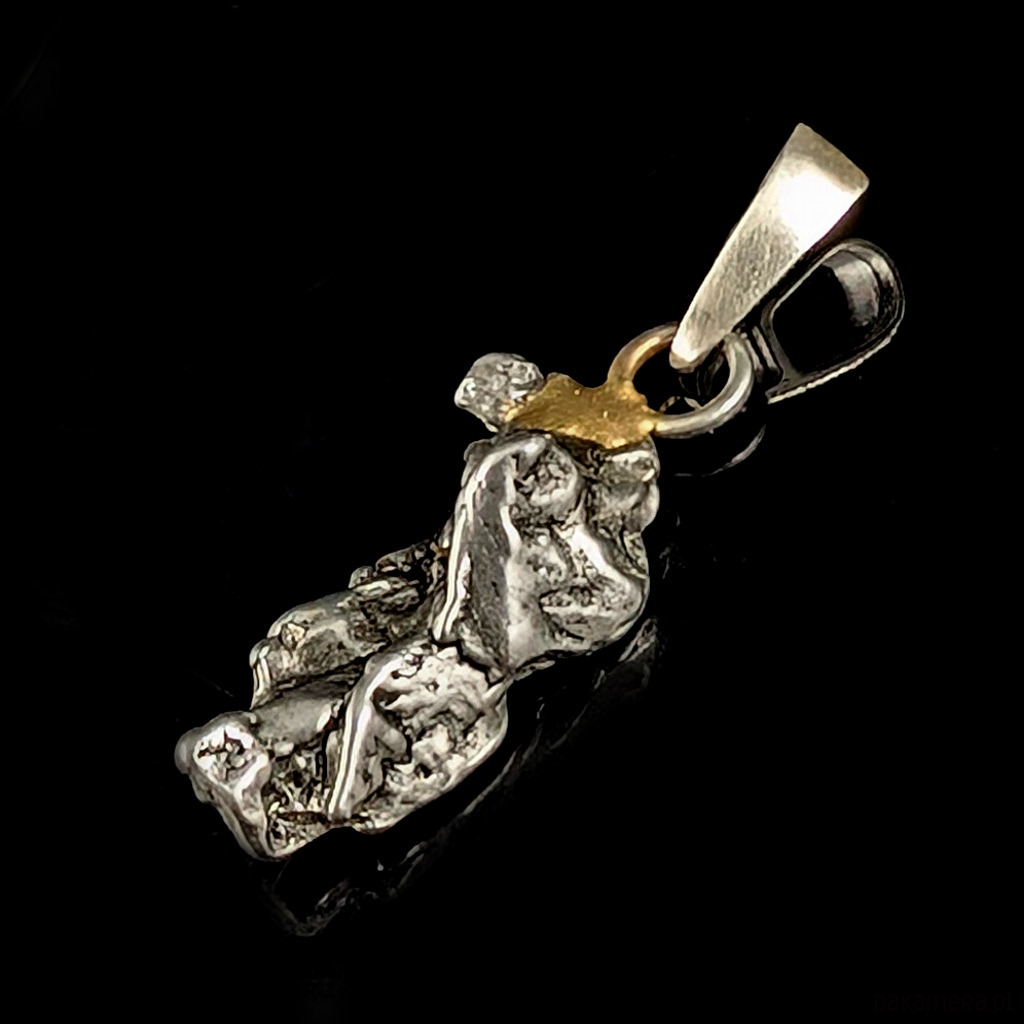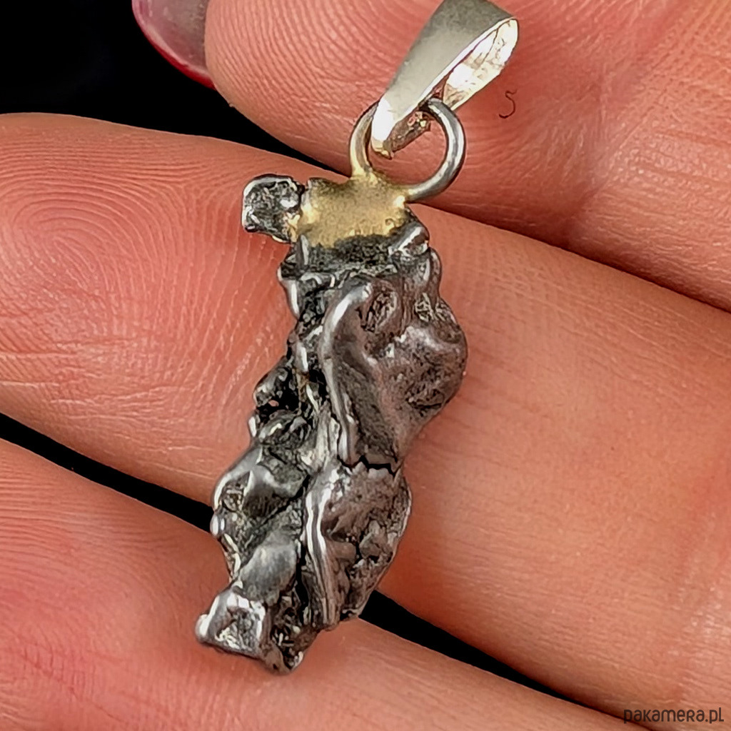 Wisiorek z meteorytem żelaznym Campo del Cielo, który znaleziono w 1576 roku w Argentynie. Krawatka srebro 925 Uniwersalny, dla niego lub dla niej. Wymiary 22 x 8 mm. Długość max 27 mm. Waga wisiora 3 g. Do meteorytu dołączona zostanie metryka z datą, miejscem spadku i wagą. Wisiorek zostanie zapakowany w ozdobne pudełeczko.