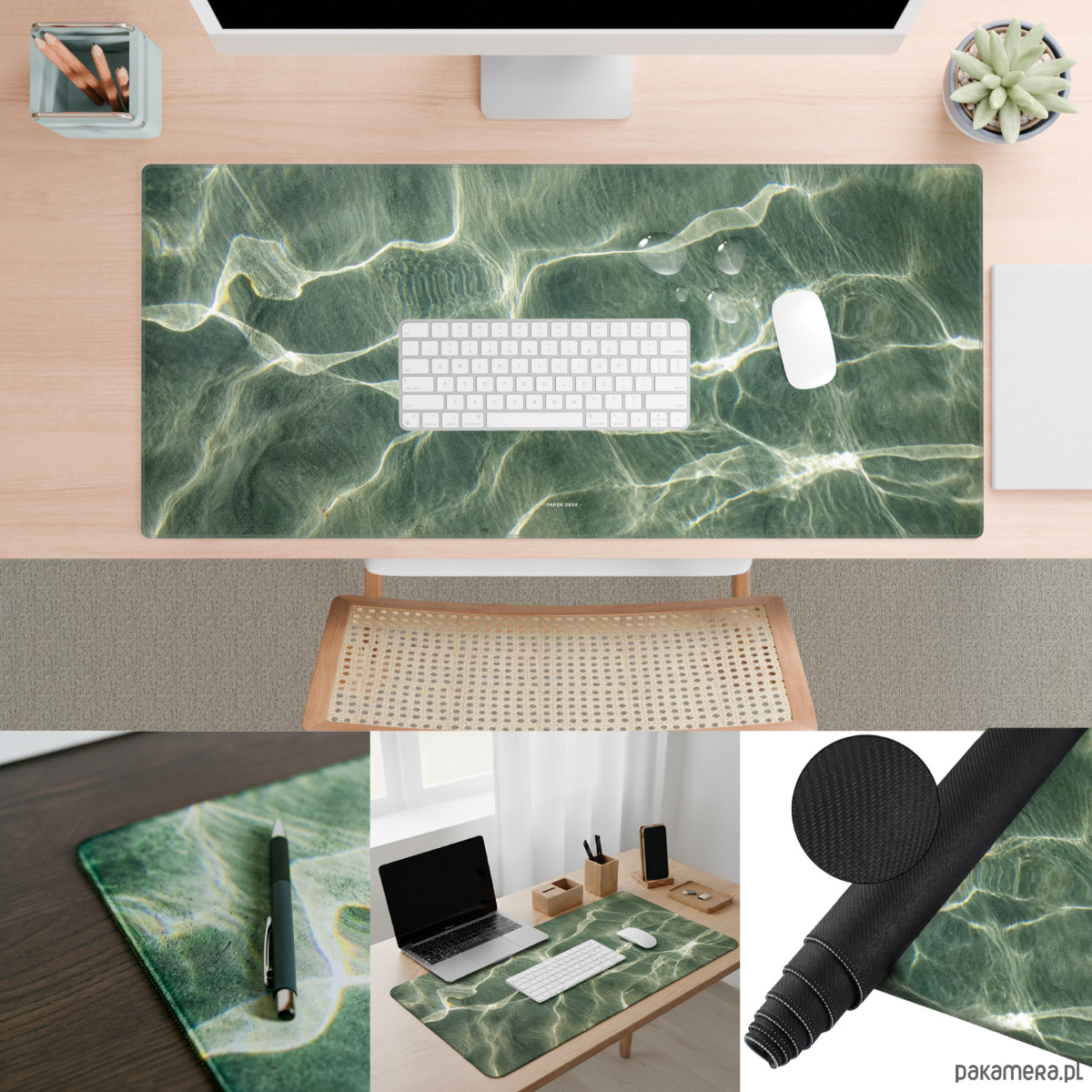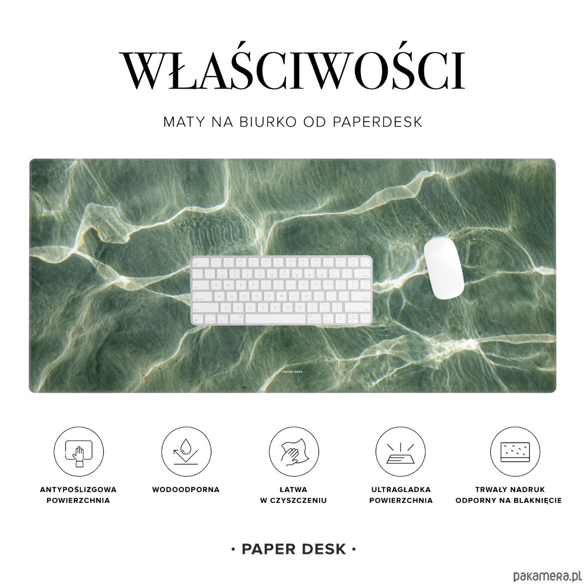 Duży format 90×40 cm zapewnia wygodną powierzchnię dla klawiatury, myszy, laptopa oraz notesów czy planerów. Gładka, satynowa powierzchnia jest przyjemna w dotyku i komfortowa podczas codziennego użytkowania, a antypoślizgowy spód stabilnie utrzymuje podkładkę na biurku.
