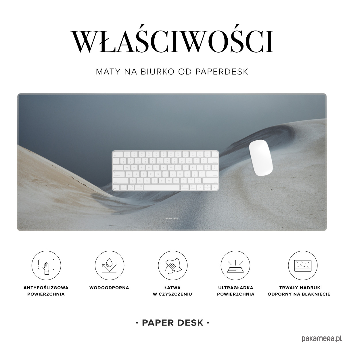 Podkładka na biurko Dune to elegancka mata inspirowana spokojnym krajobrazem pustynnych wydm. Delikatne, płynne linie przypominające piasek formowany przez wiatr wprowadzają do przestrzeni pracy harmonię, lekkość i naturalny rytm.