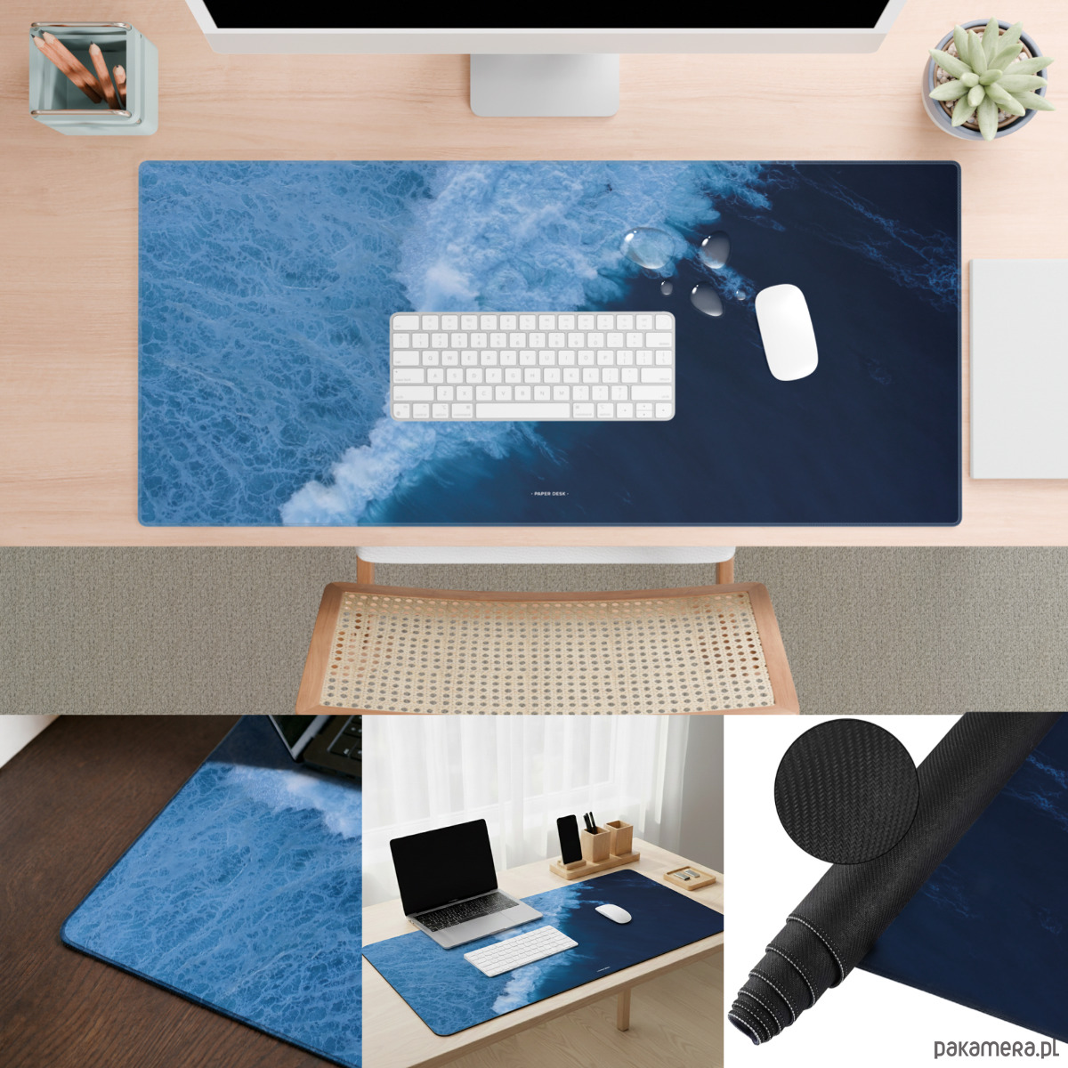 Podkładka PaperDesk SEA 90×40 cm — elegancka i funkcjonalna mata biurkowa zaprojektowana z myślą o komforcie pracy w home office i nowoczesnym biurze. Duża powierzchnia 90 × 40 cm pomieści klawiaturę i mysz, tworząc jednolite, estetyczne pole pracy, które poprawia ergonomię i porządek na biurku.