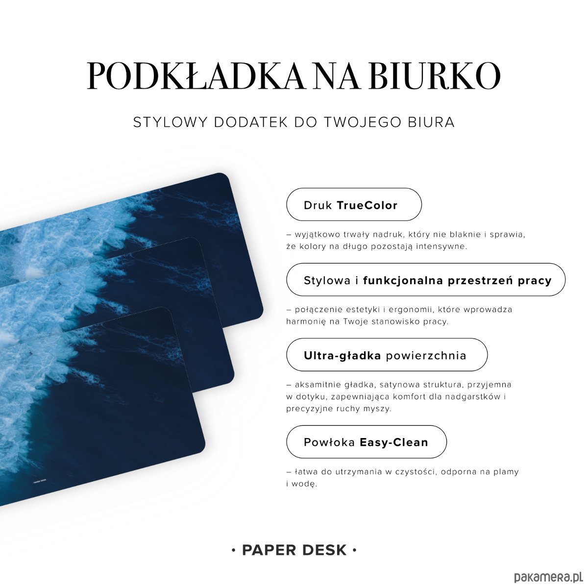 Podkładka PaperDesk SEA to praktyczne i stylowe rozwiązanie dla osób ceniących porządek, wygodę i estetykę stanowiska pracy. Produkt wysyłamy w ciągu 24 godzin (dni robocze), oferujemy darmową dostawę przy zamówieniach od 200 zł. Standardowy termin na odstąpienie od umowy to 14