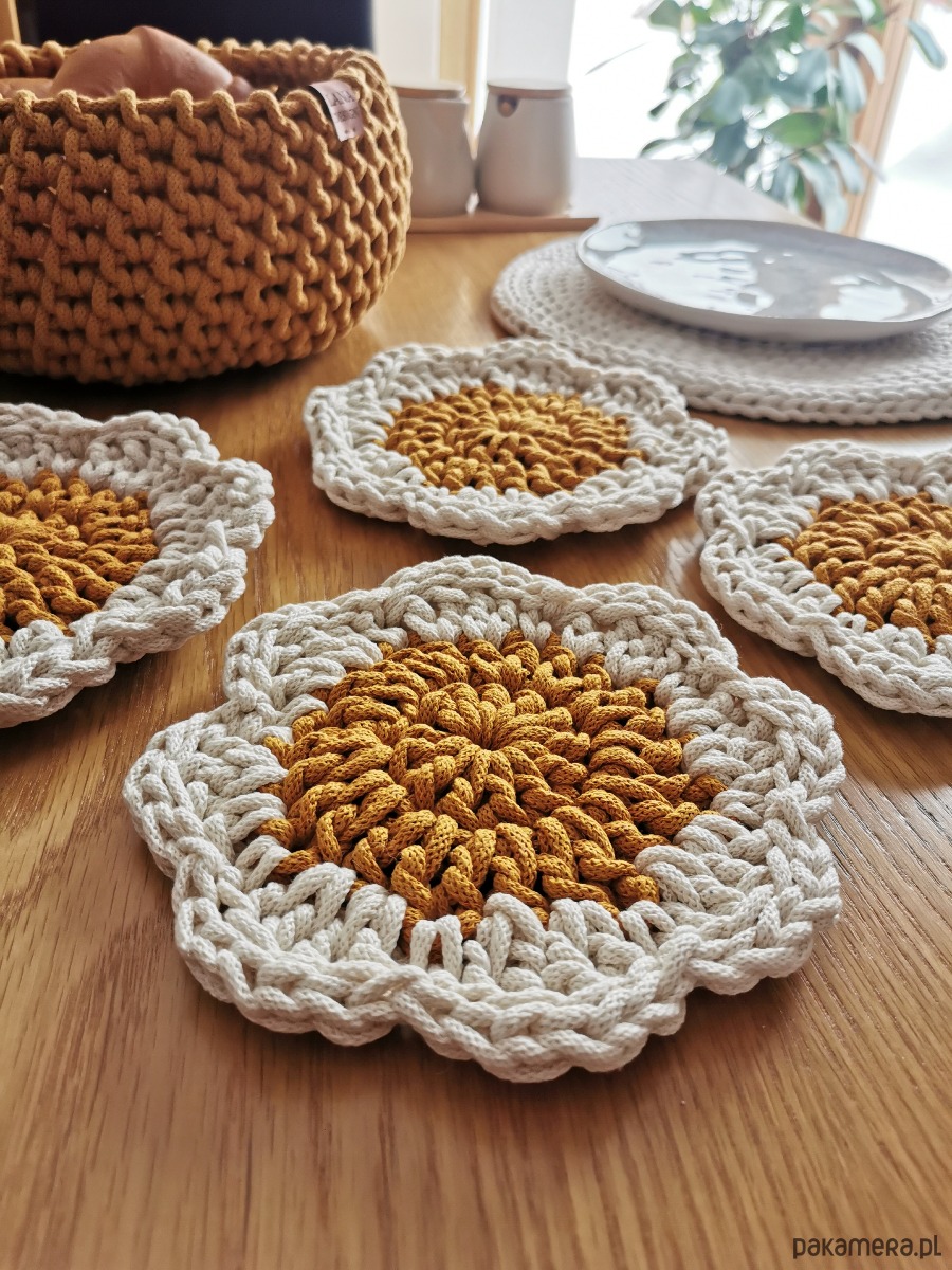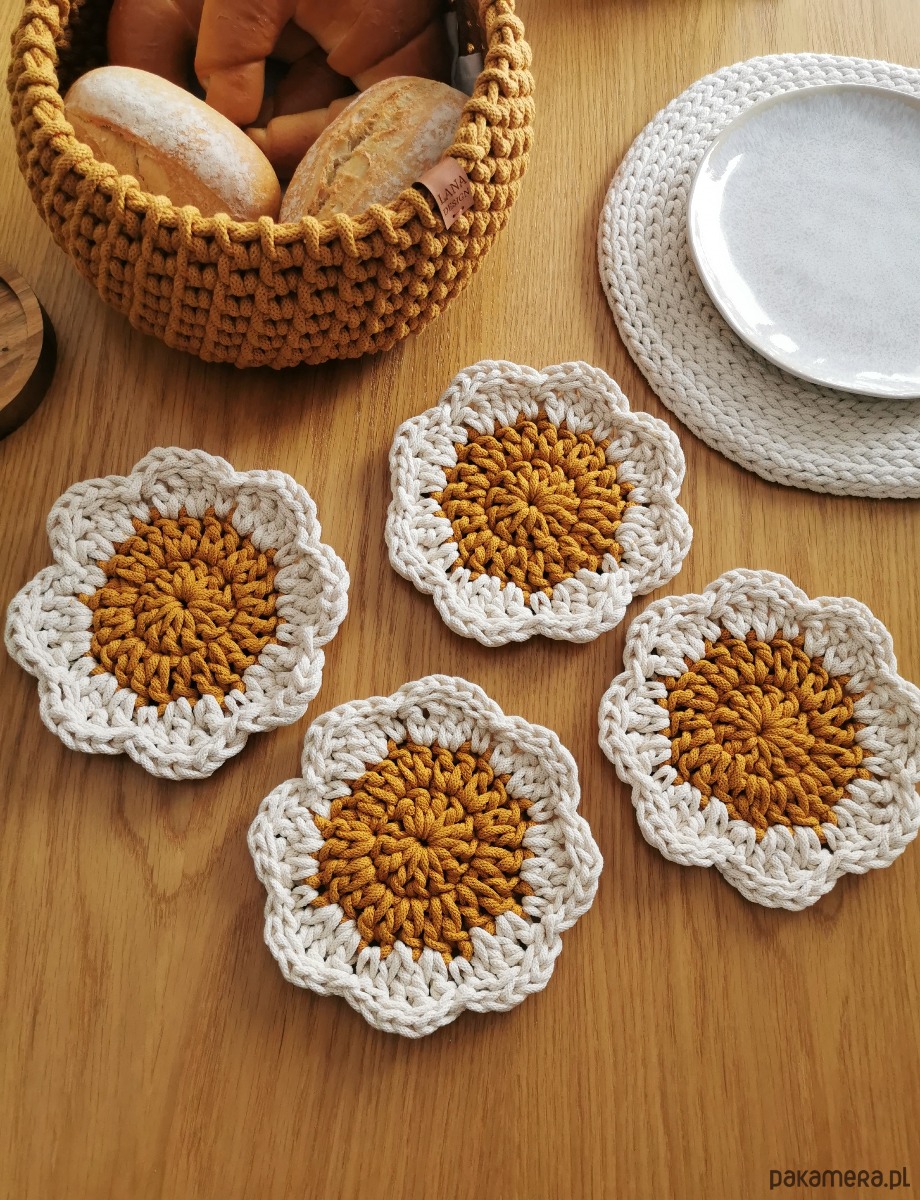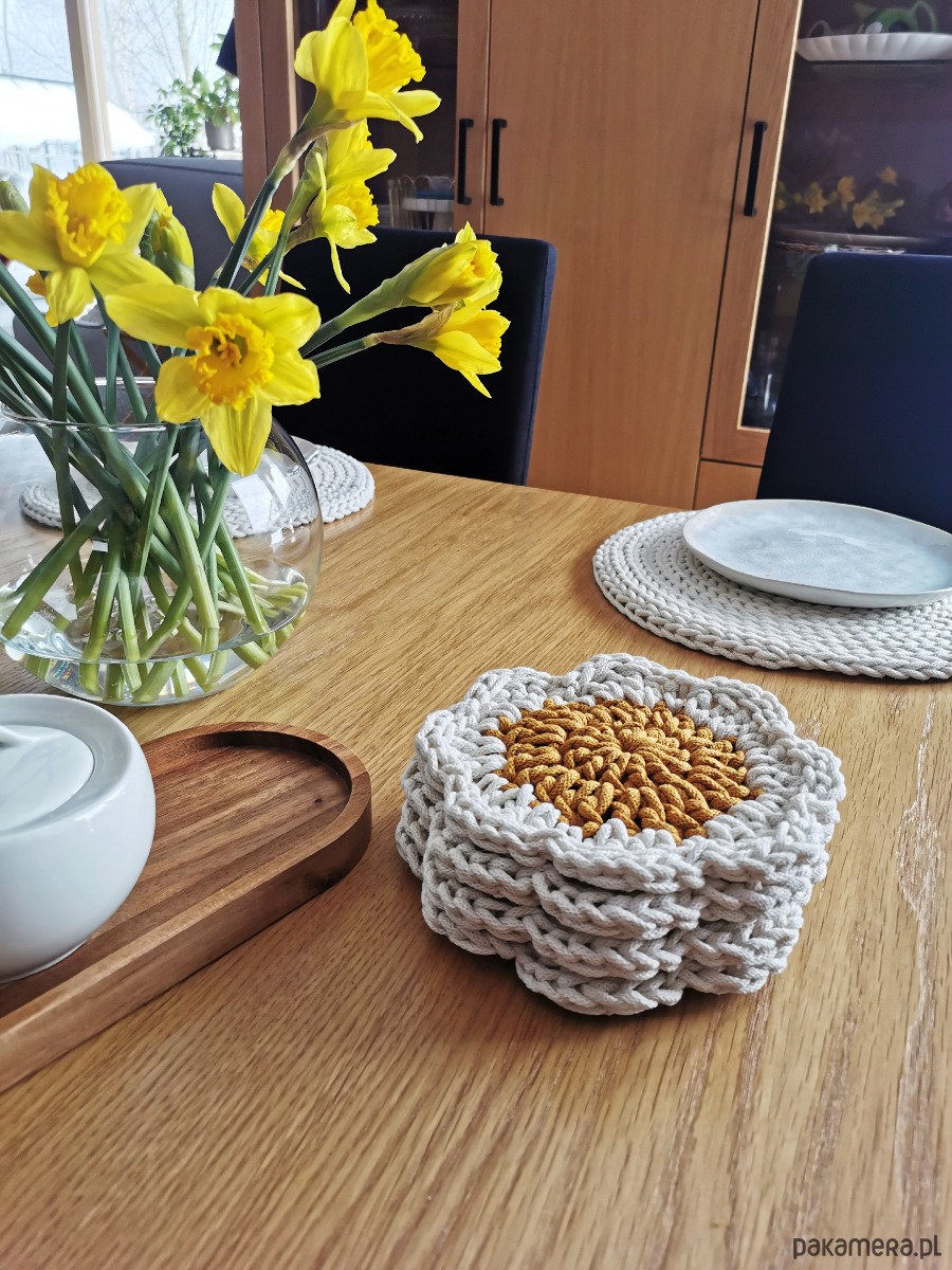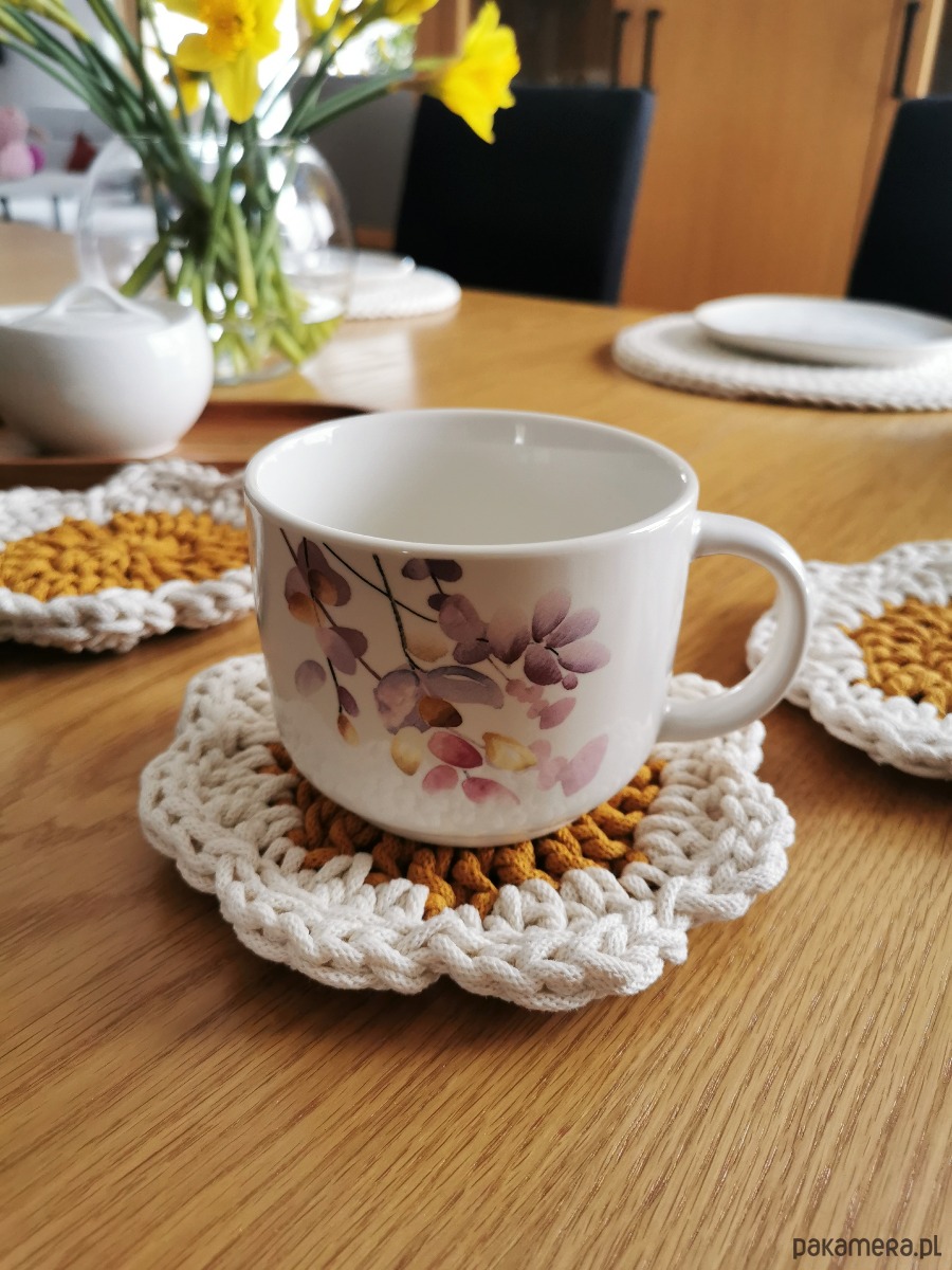Wykonana w 100% z naturalnej bawełny, łączy w sobie funkcjonalność i estetykę. Jej delikatny, kwiatowy kształt sprawia, że każdy stół nabiera przytulnego, stylowego charakteru — niezależnie od tego, czy pijesz poranną kawę, jesz śniadanie z bliskimi czy organizujesz spotkanie przy stole.