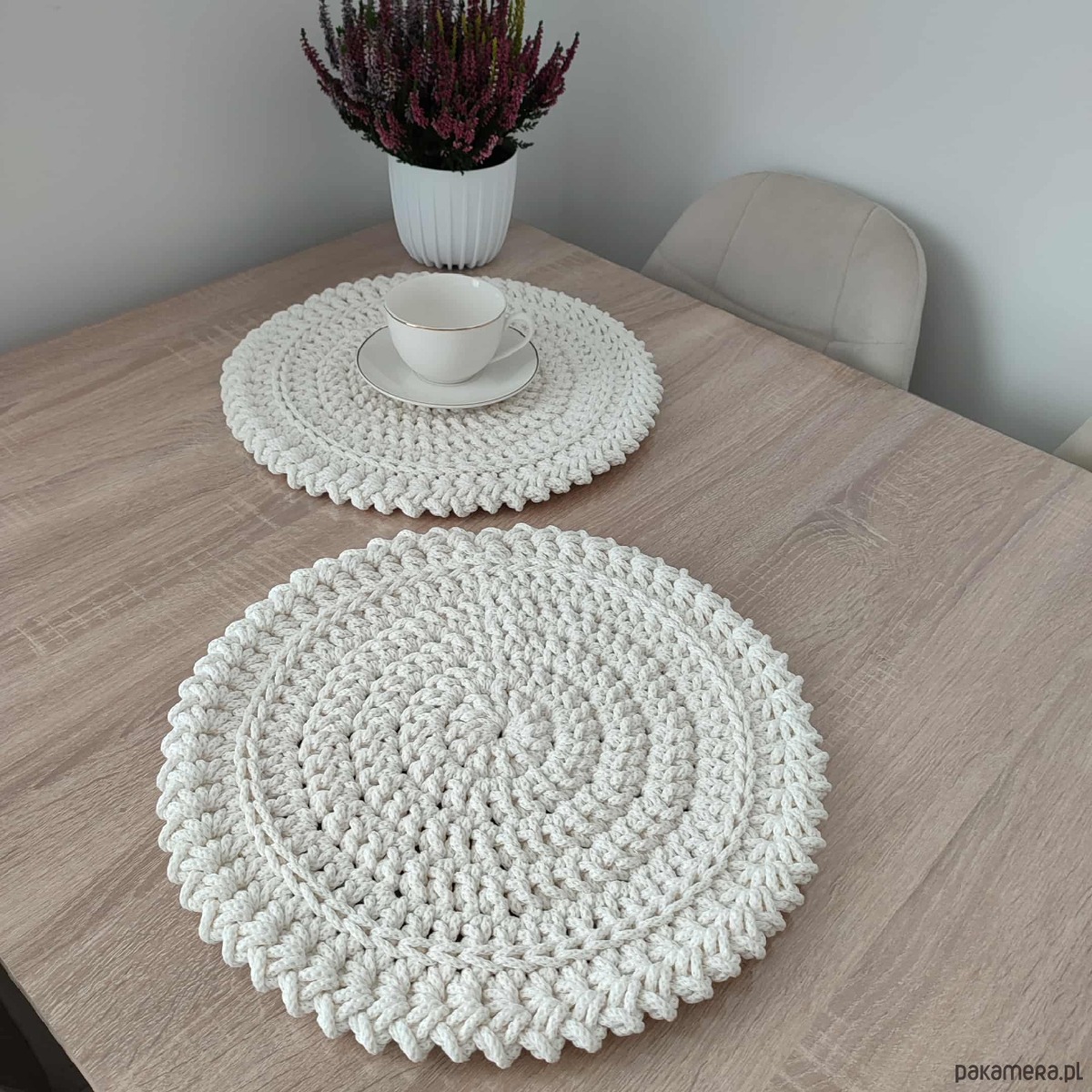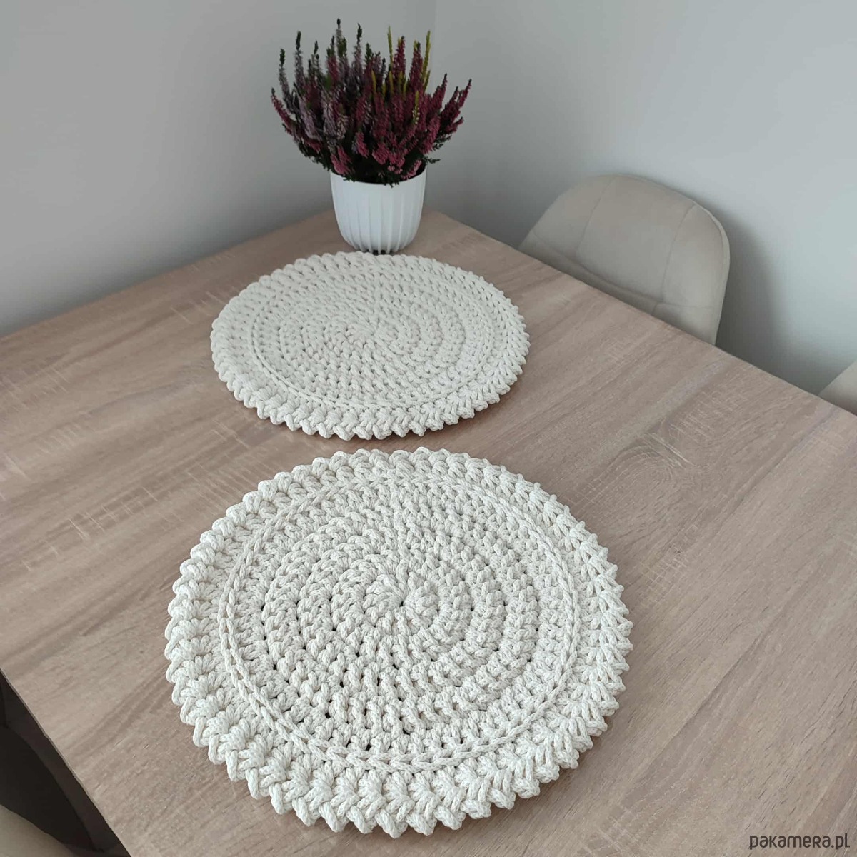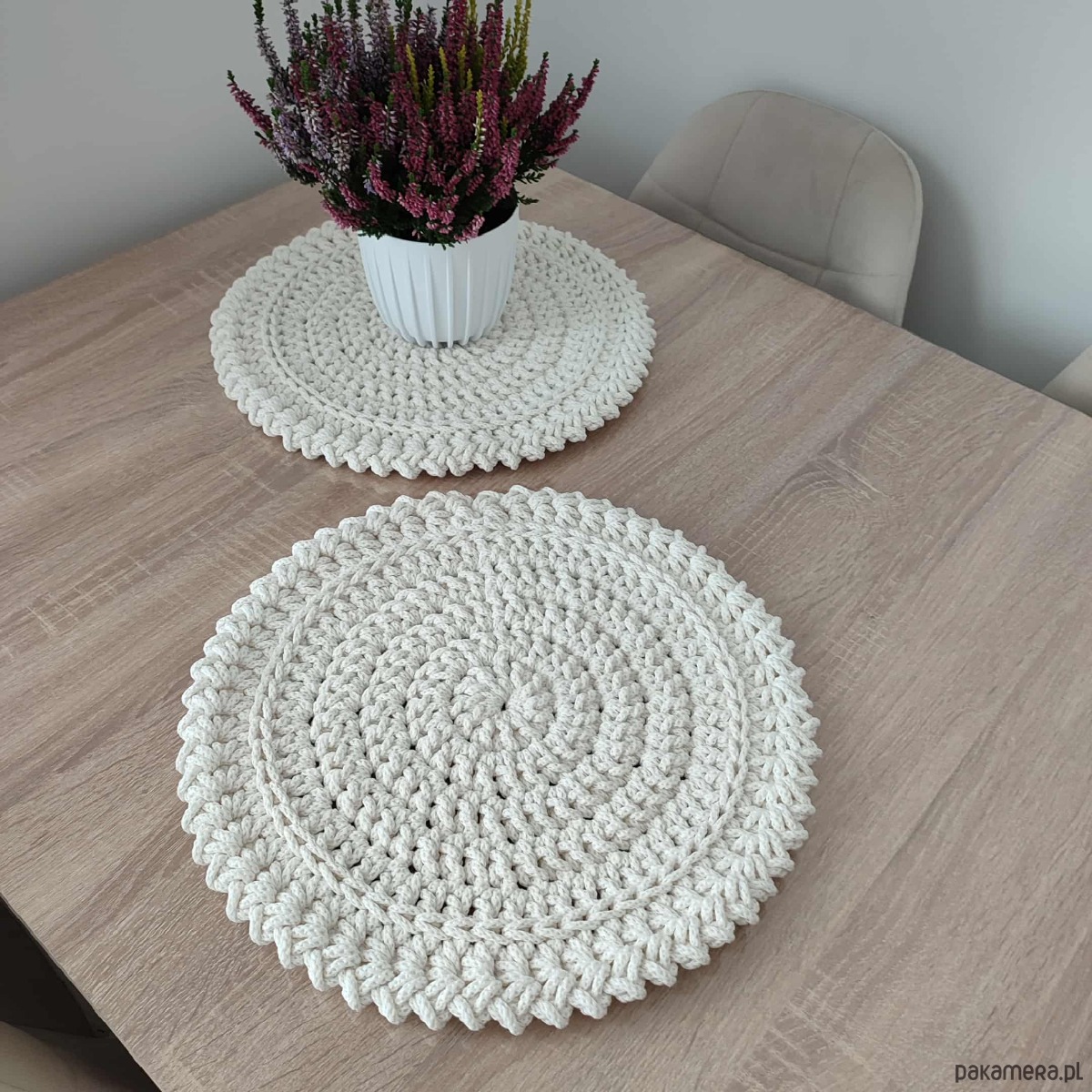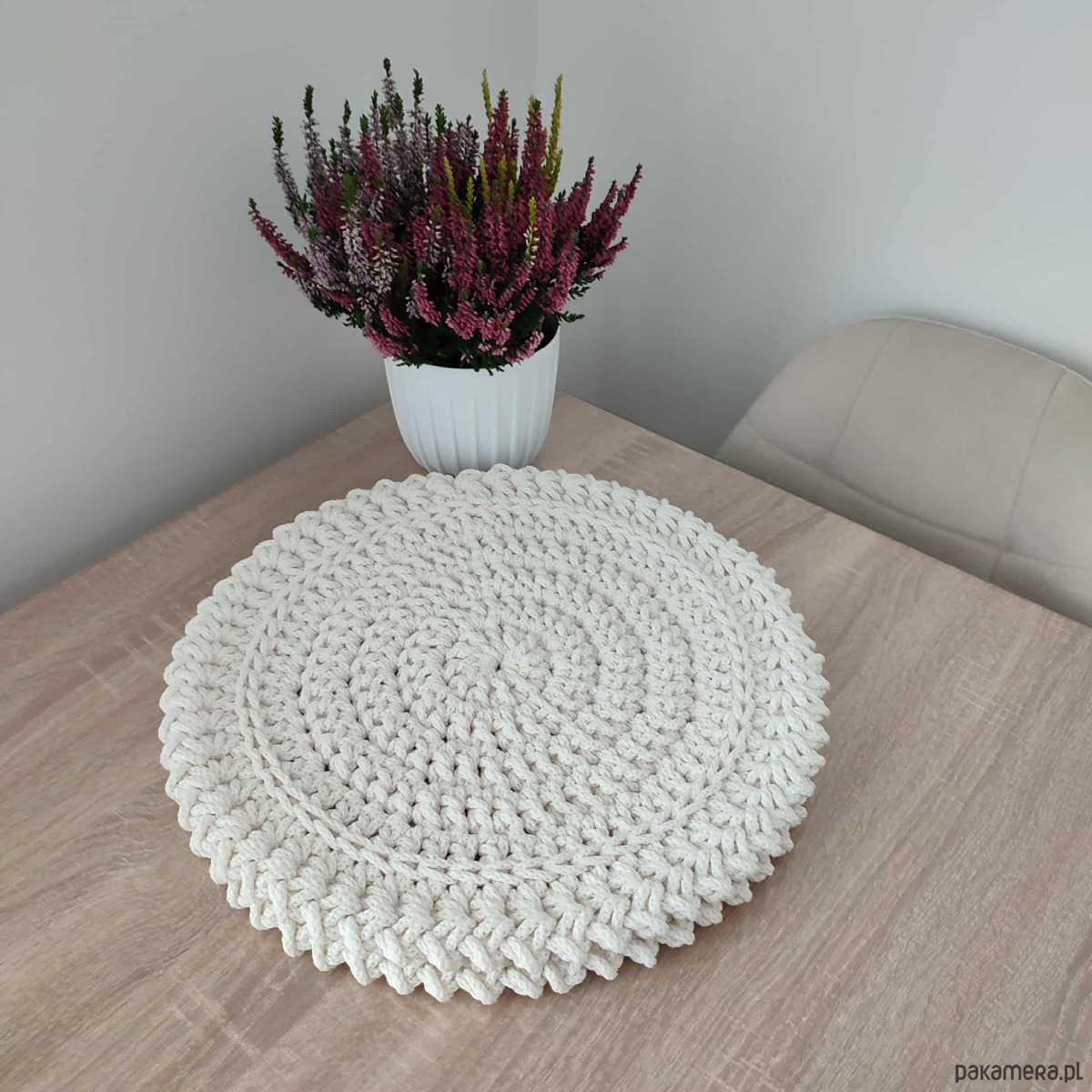 Podkładka okrągła ze sznurka bawełnianego szydełkowa 38cm