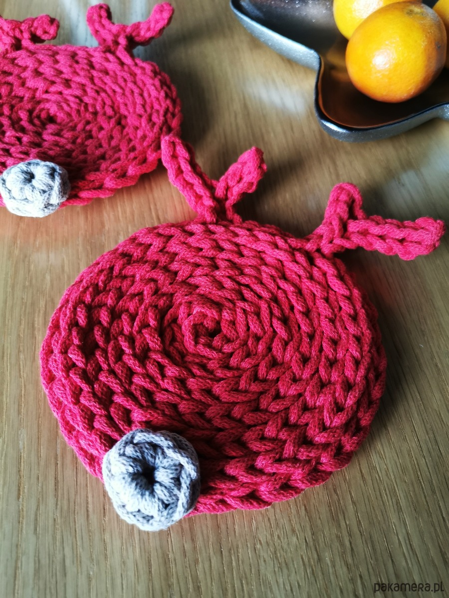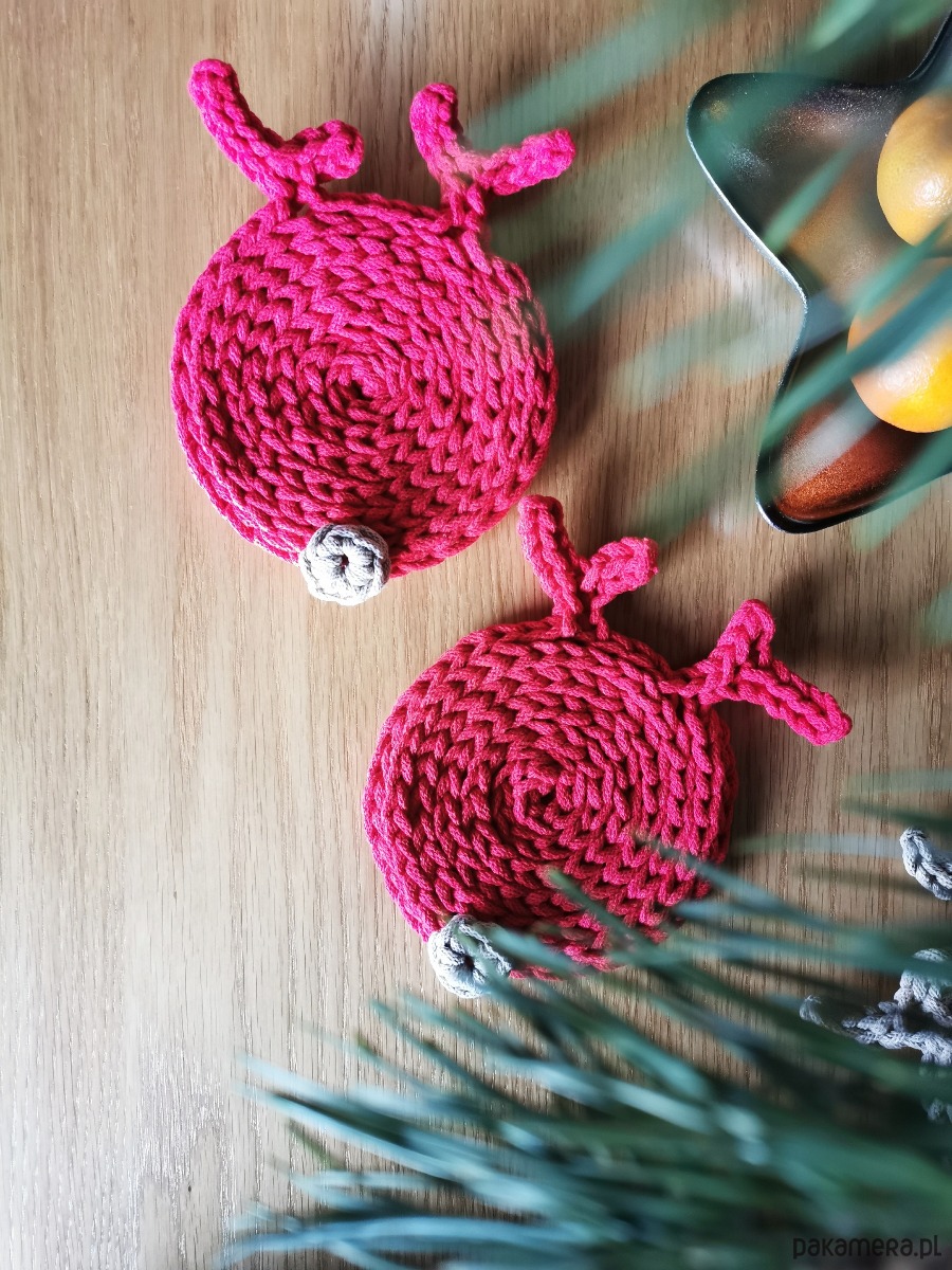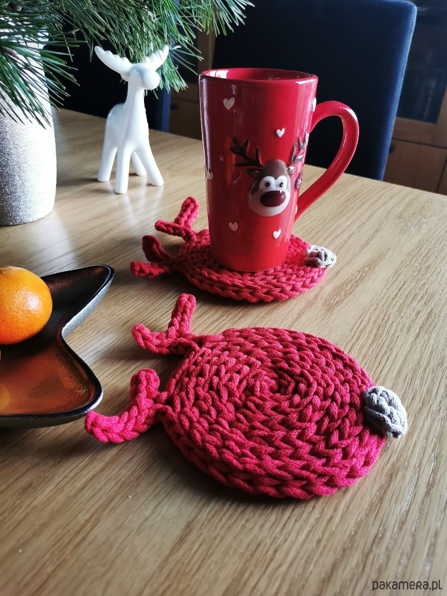 Wprowadź do swojego domu odrobinę świątecznej magii dzięki uroczej podkładce pod kubek w kształcie renifera. Każdy renifer jest starannie wykonany z miękkiego bawełnianego sznurka, dzięki czemu nie tylko pięknie zdobi świąteczny stół, ale też doskonale chroni jego powierzchnię przed gorącymi kubkami, szklankami i zimowymi napojami.