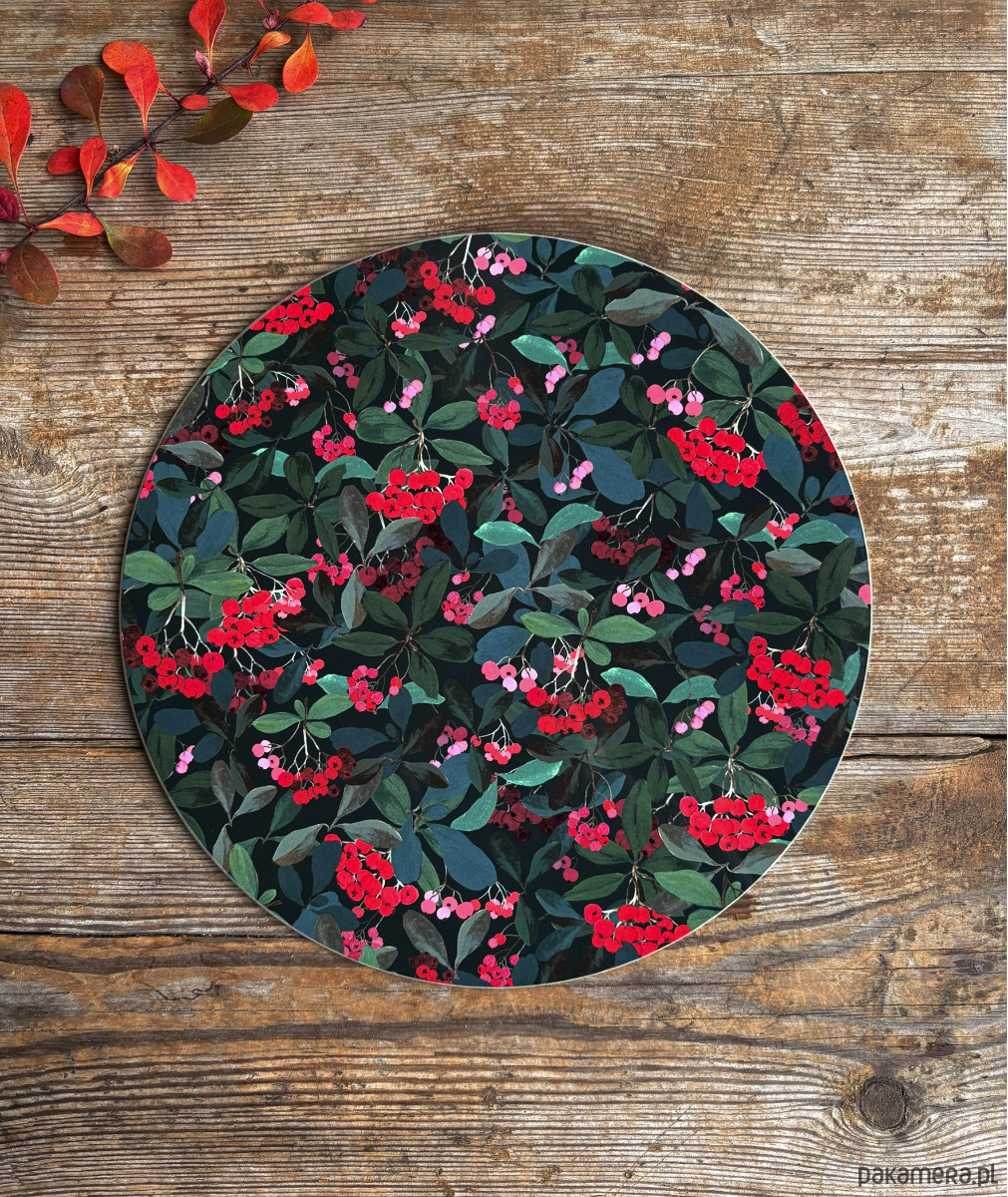 Podkładka pod talerz- Red berries- Zimowe krzewy- Ilustracja