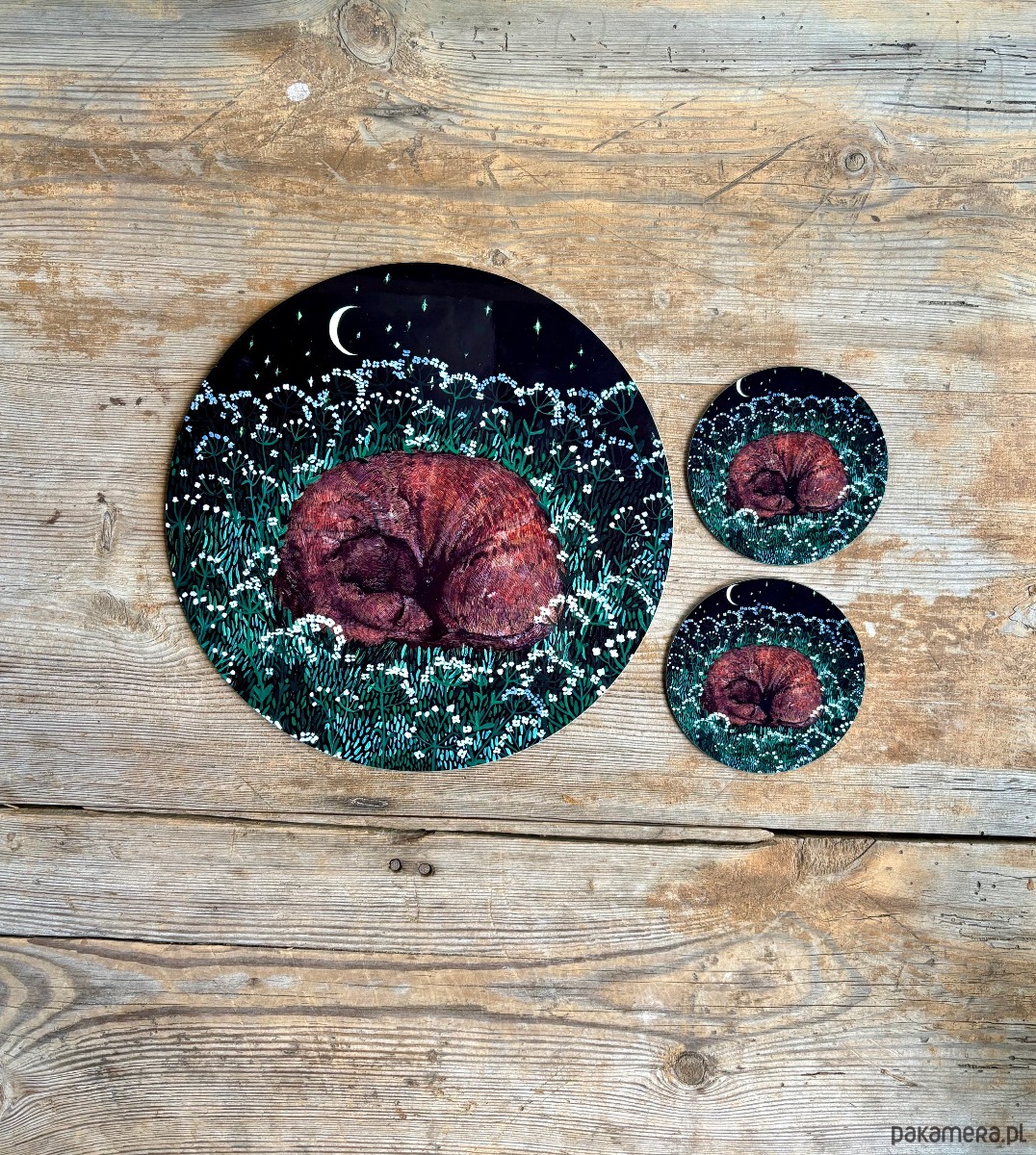 Podkładka pod talerz z nadrukiem autorskiej ilustracji.