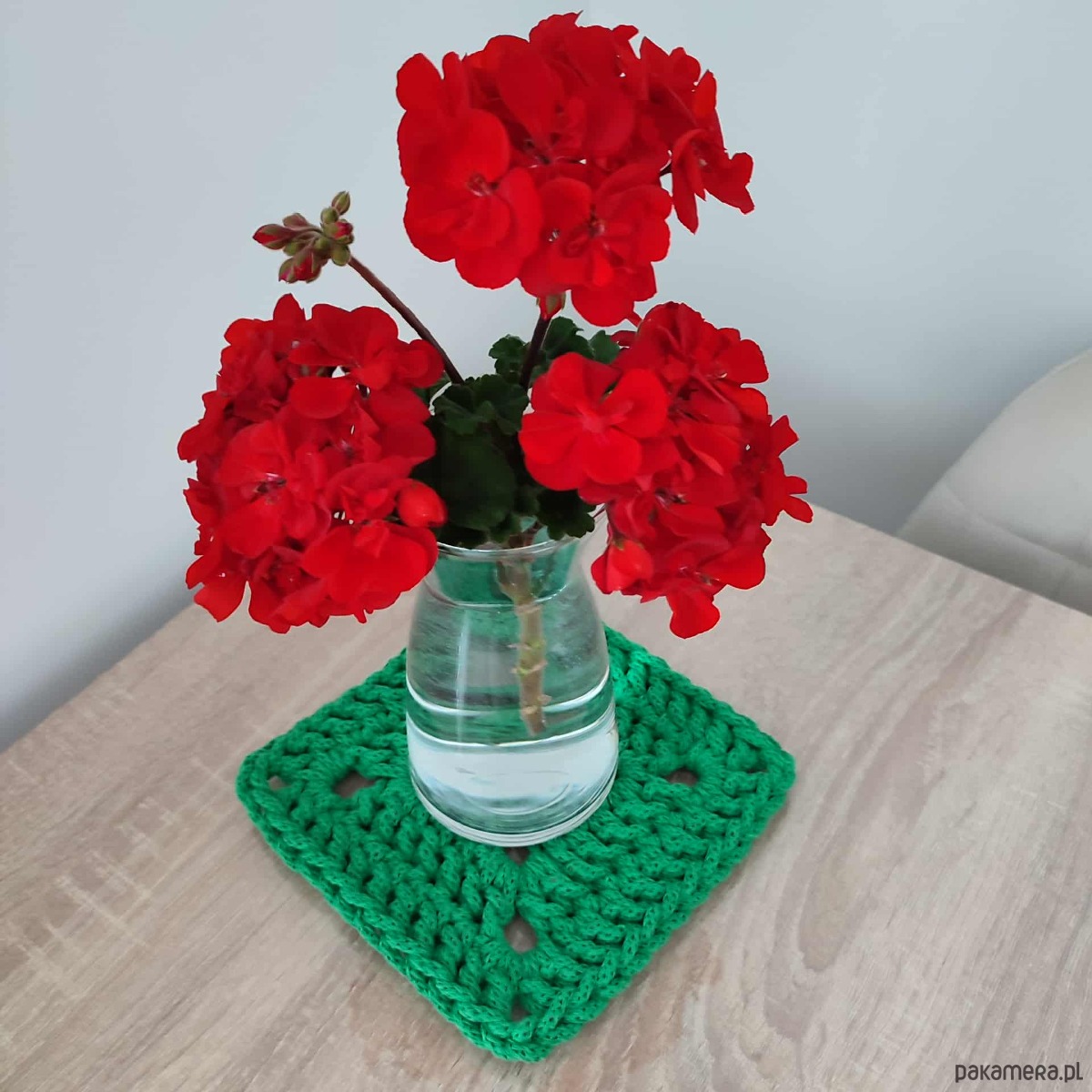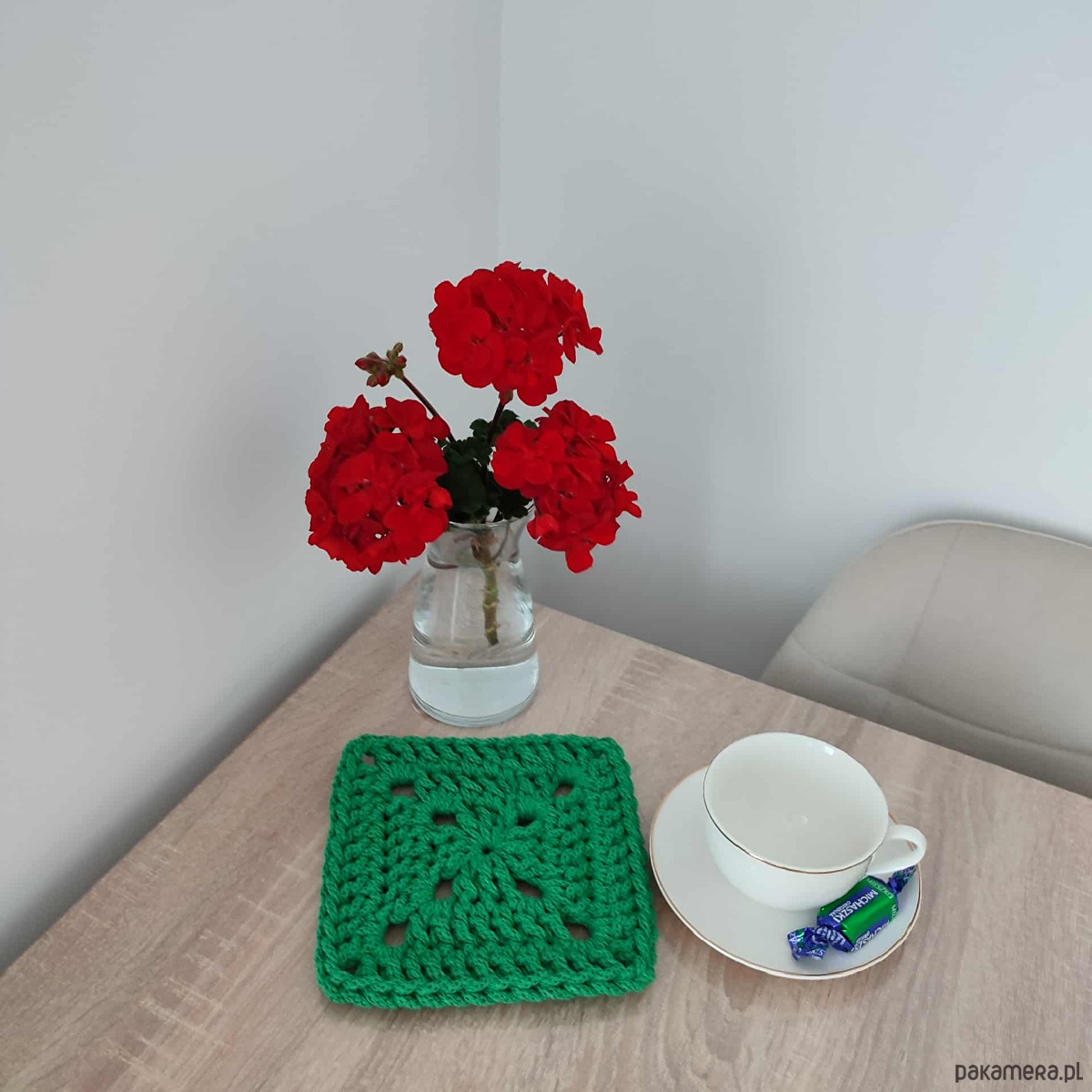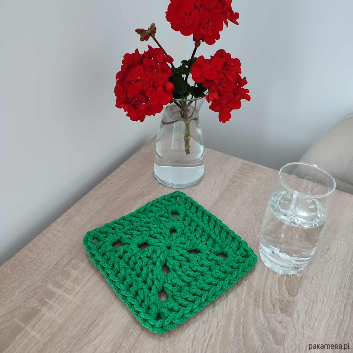Podkładka o wymiarach 16cmx16cm, wykonana metodą szydełkowania z polskiego sznurka bawełnianego 5mm.