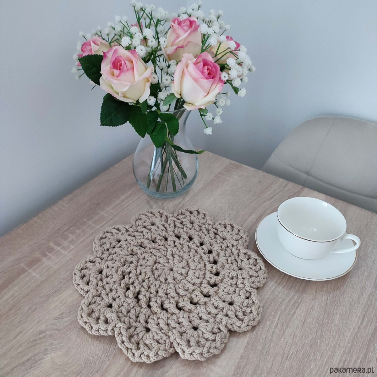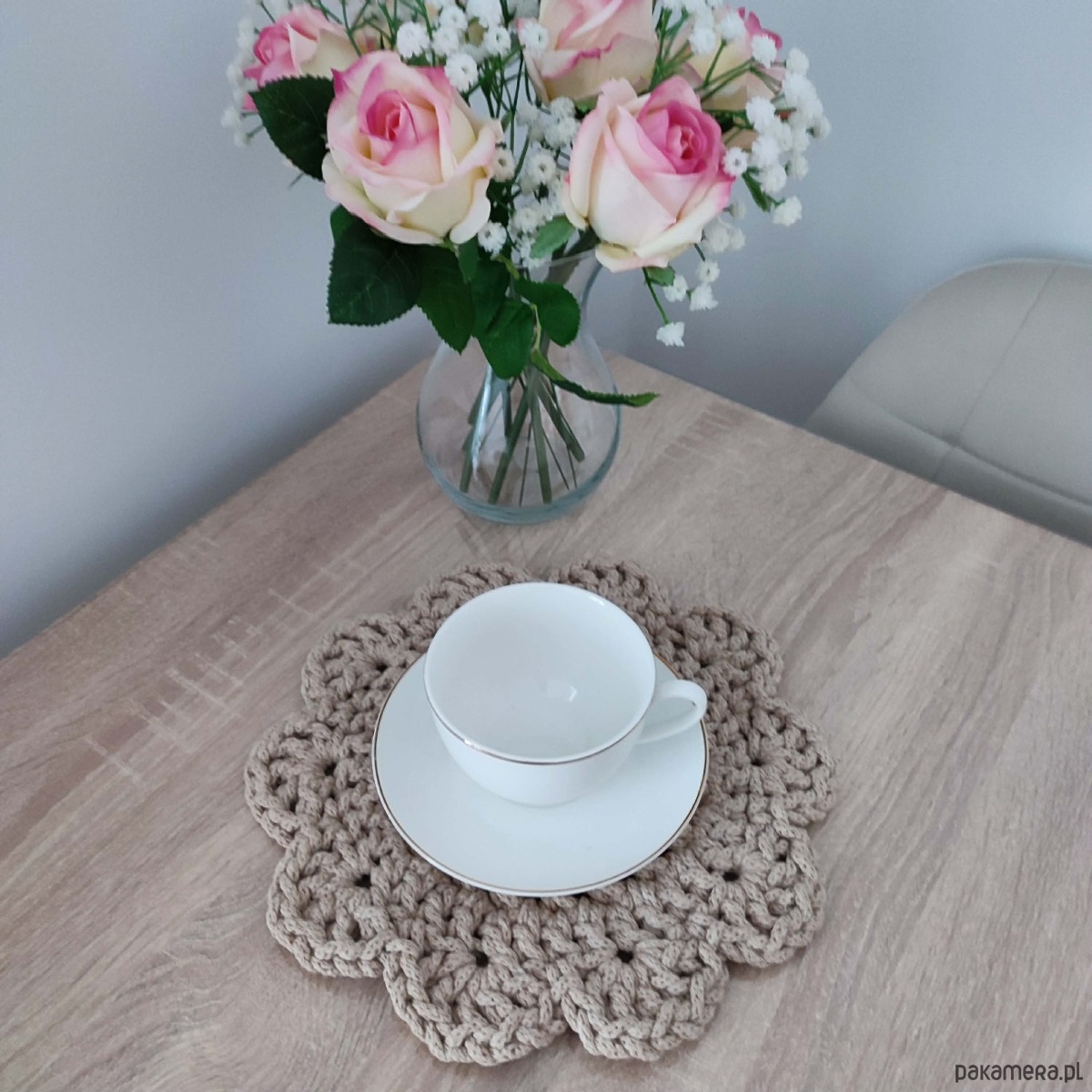 Podkładka szydełkowa pod kubki ze sznurka 27cm
